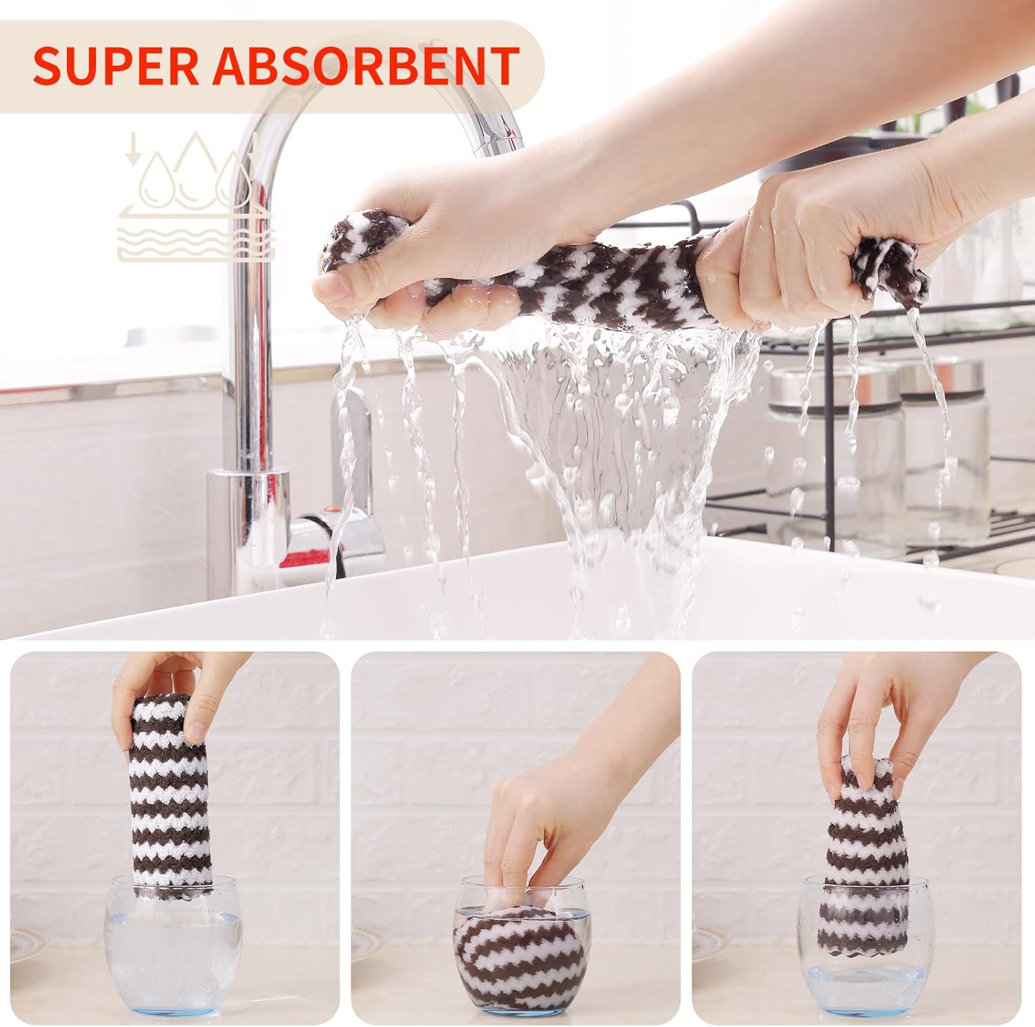 - Super Soft and Absorbent: Experience the luxurious softness of our dish towels. They are crafted with high-quality materials which feels soft and won't scratch your hands or any surfaces. Strong water absorption, easily absorb liquid and overflow, make the surface clean and dry.