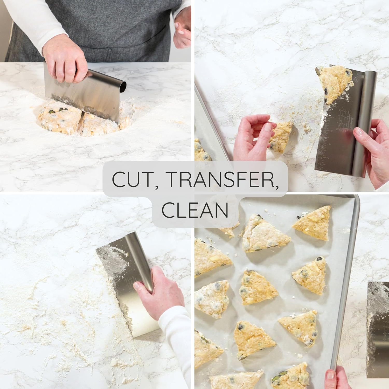 - Durable Stainless Steel Pastry Cutter Tool - The scraper is crafted from high-quality stainless steel for precision cuts and lasting durability, built to withstand repeated use without bending or rusting. Its also dishwasher-safe which makes cleanup a breeze after every use.