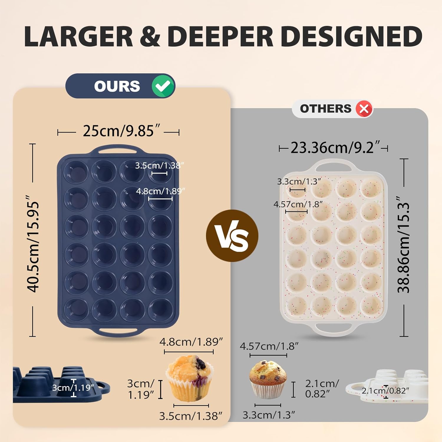 - Food Grade Silicone ,Easy to Clean: Non-stick silicone muffin tray is made of food grade silicone, and this nonstick design makes the tray easier to clean.