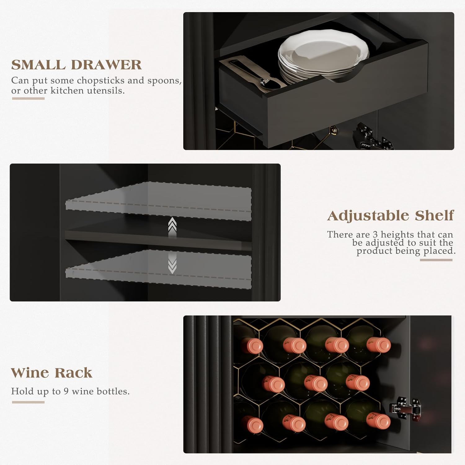 - Multifunctional Wine Bar Cabinet: This is a multi-functional wine cabinet, not only can be used as a coffee bar cabinet, but also can be used as a buffet sideboard, or kitchen storage cabinet, spacious storage space to meet your various needs