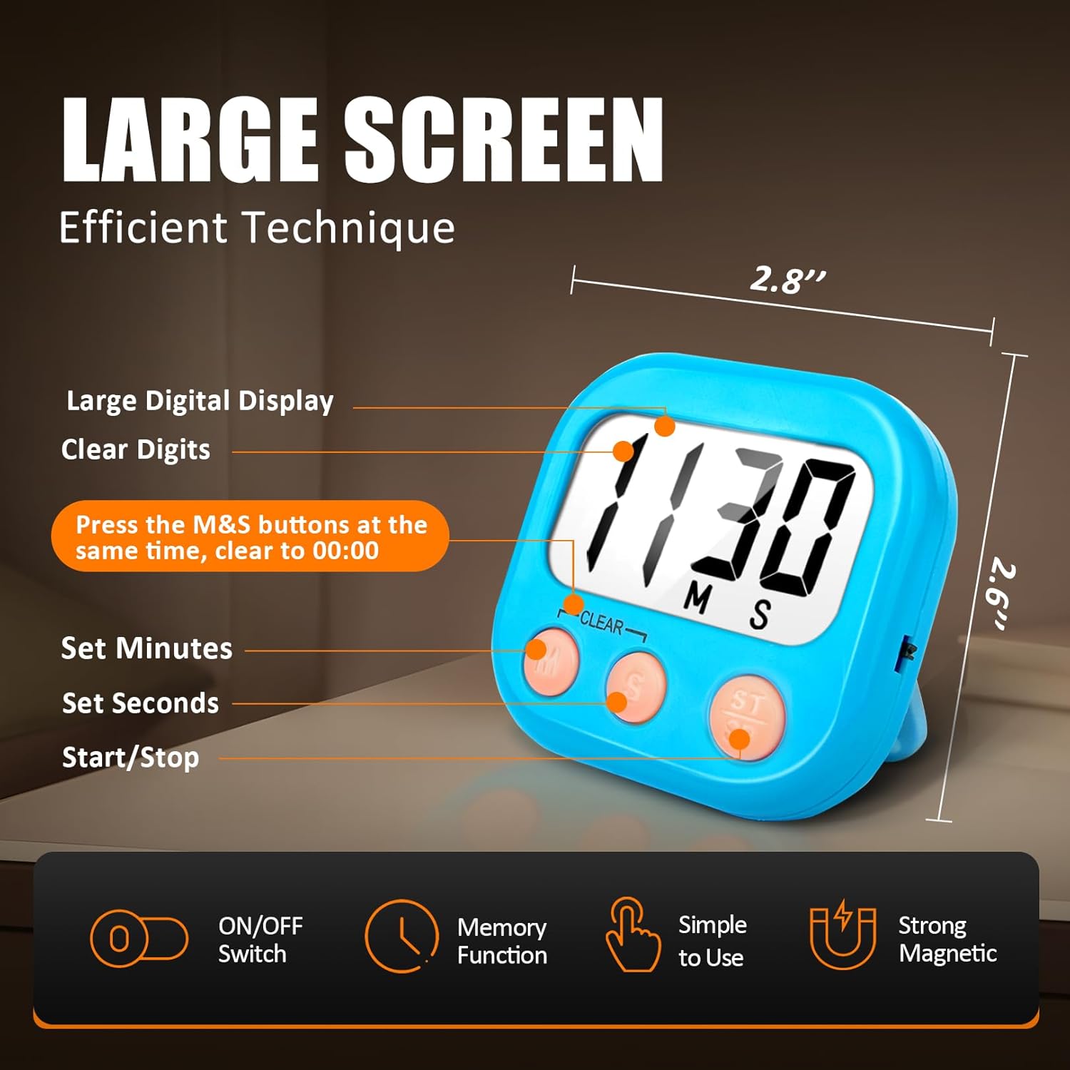 - 12 pack digital kitchen timers with large display and 3 buttones, super easy to read and set up
