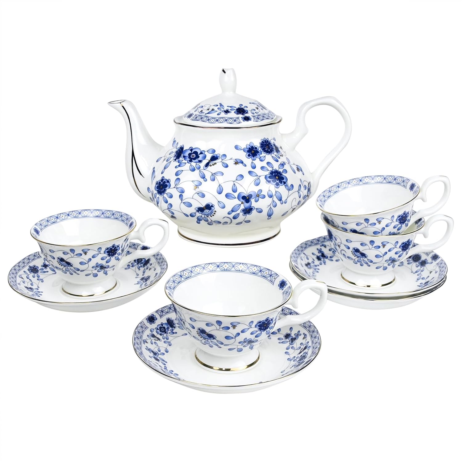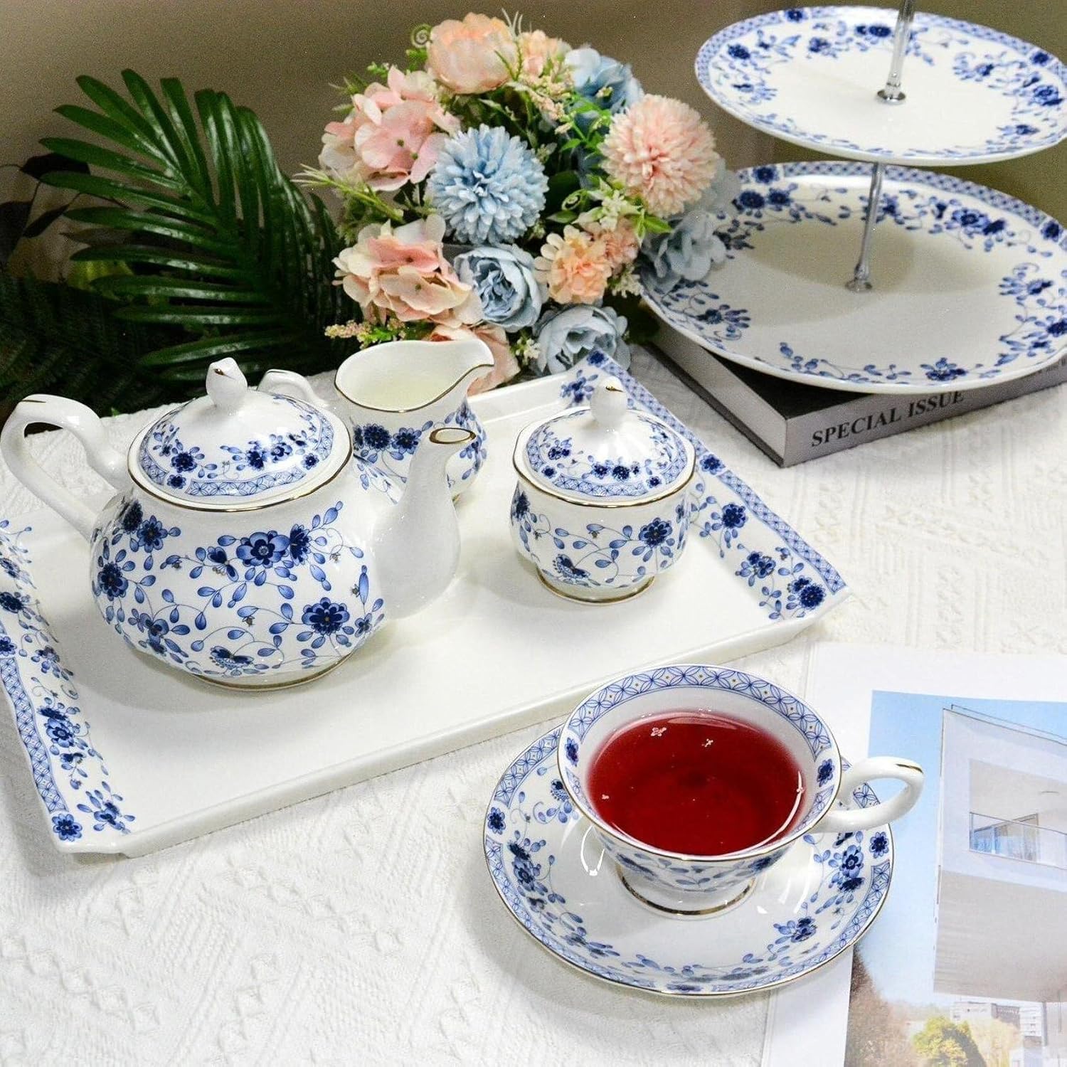 - 【Application Scenario】The unique bone China tea set with teapot is not only the perfect companion for your life, but also the best Christmas gift for friends and relatives, coffee or tea lovers. tea sets for adults are suitable for senior tea parties, weddings and parties.