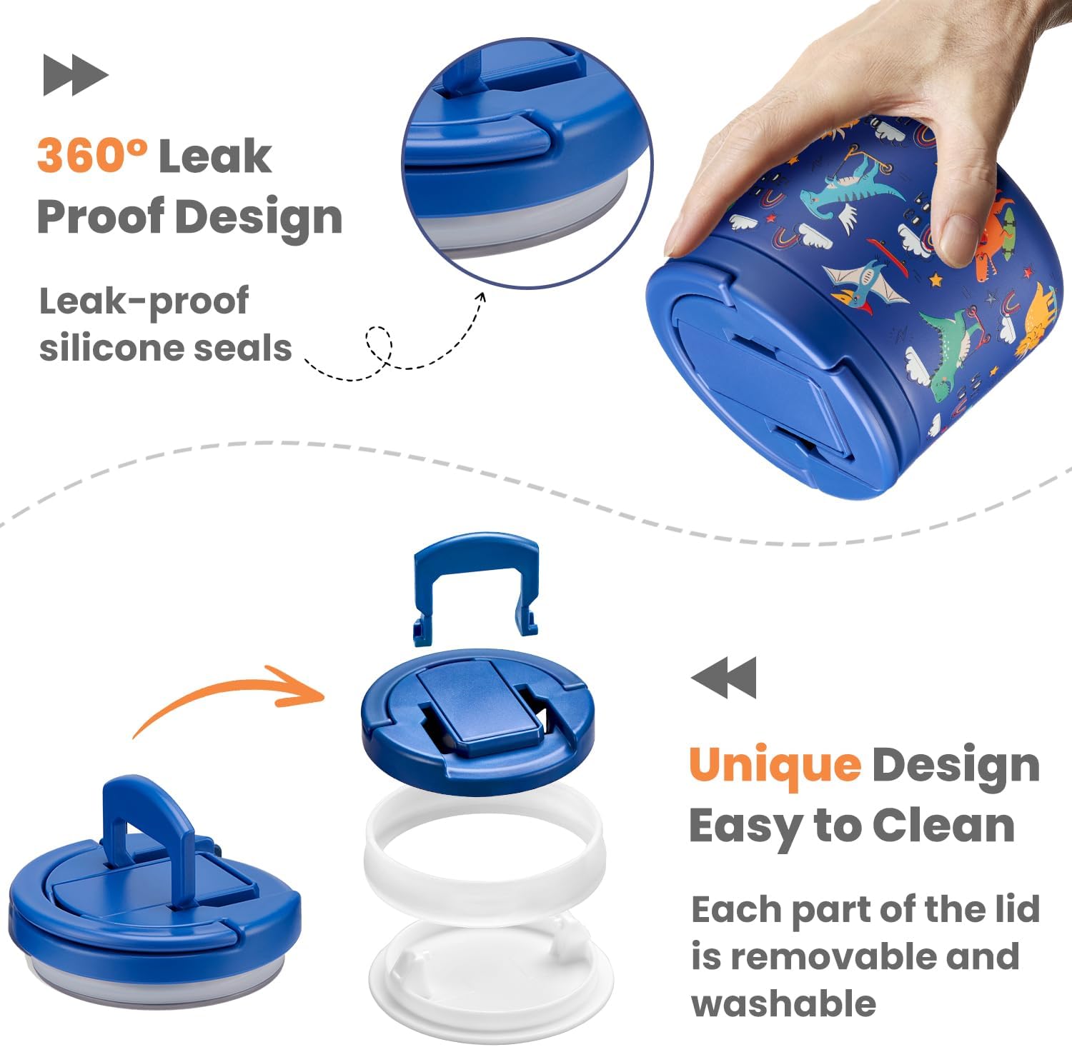 - Use Tips and Notes: In order to keep your food hot or cold for a longer period of time, we recommend preheating/pre-cooling your food or soup in hot/ice water for 5~10 minutes before placing it in the food jar. Note, when you remove the lid for cleaning and then re-installing, q please follow the installation steps in the picture, when installing the buckle please squeeze the top and bottom part of the lid with your hand to utilize the installation.