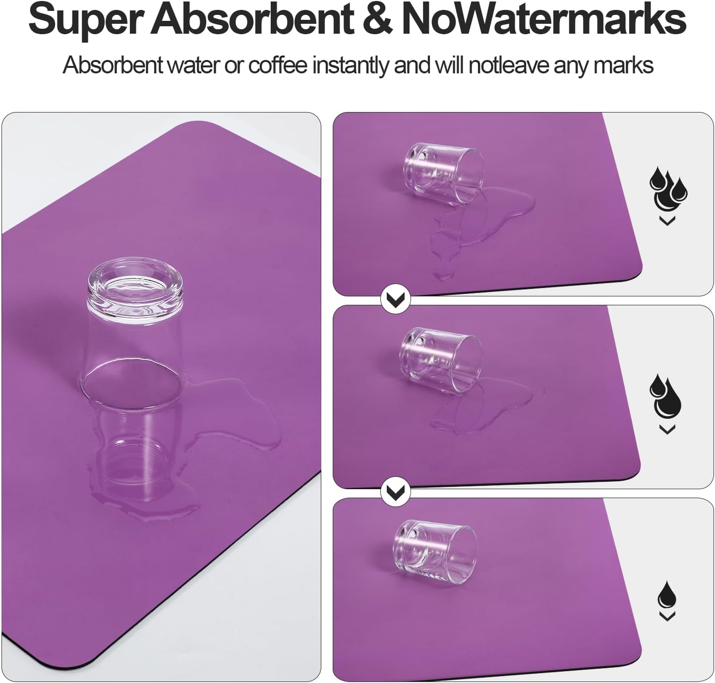 Dish Drying Mat for Kitchen Counter | Coffee Bar Mat for Countertops | Heat Resistant Drainer Mat with Non-slip Rubber Backed | Hide Stain Kitchen Absorbent Draining Mat | Purple 16"x24"