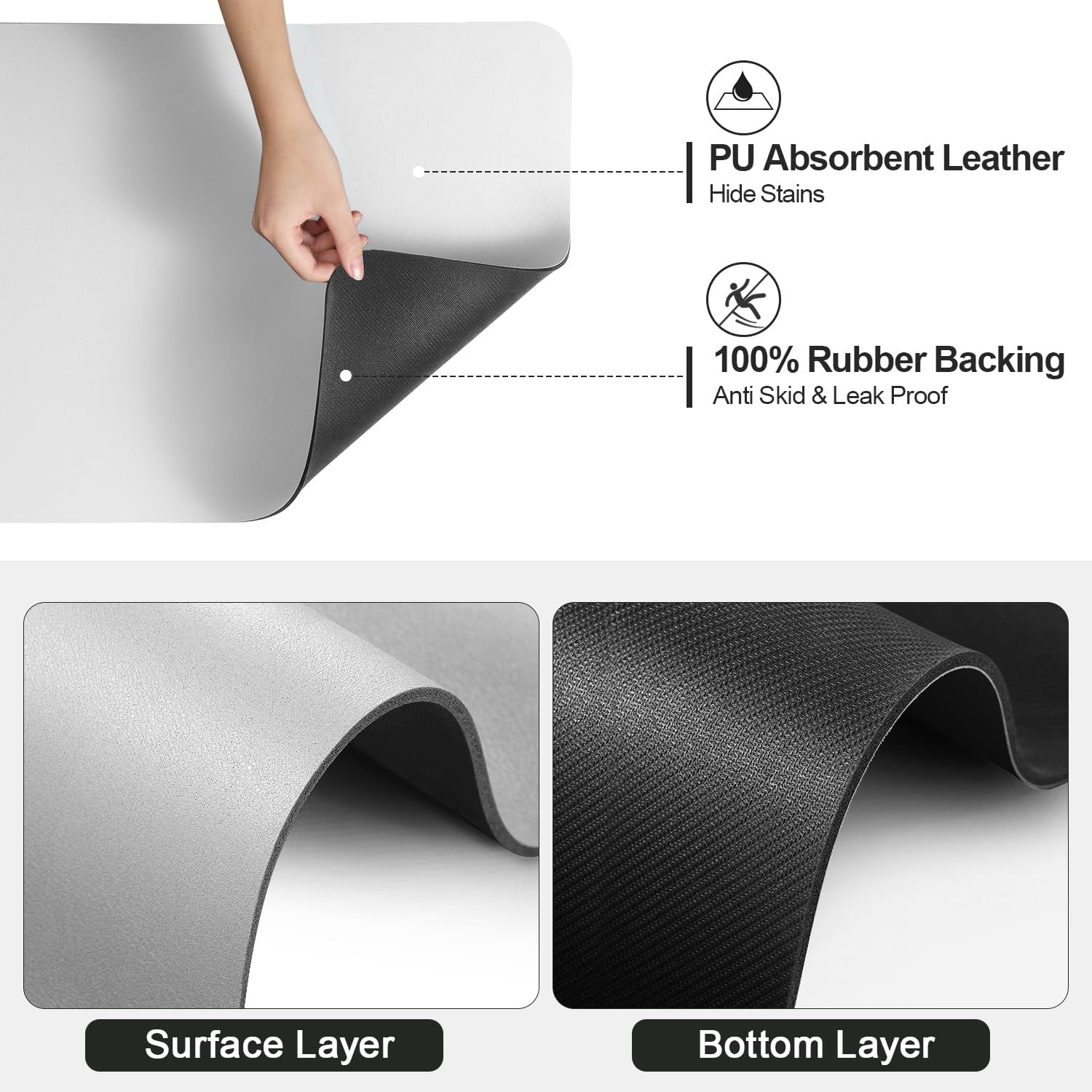 Dish Drying Mat for Kitchen Counter | Coffee Bar Mat for Countertops | Heat Resistant Drainer Mat with Non-slip Rubber Backed | Hide Stain Kitchen Absorbent Draining Mat | Light Grey 16"x24"