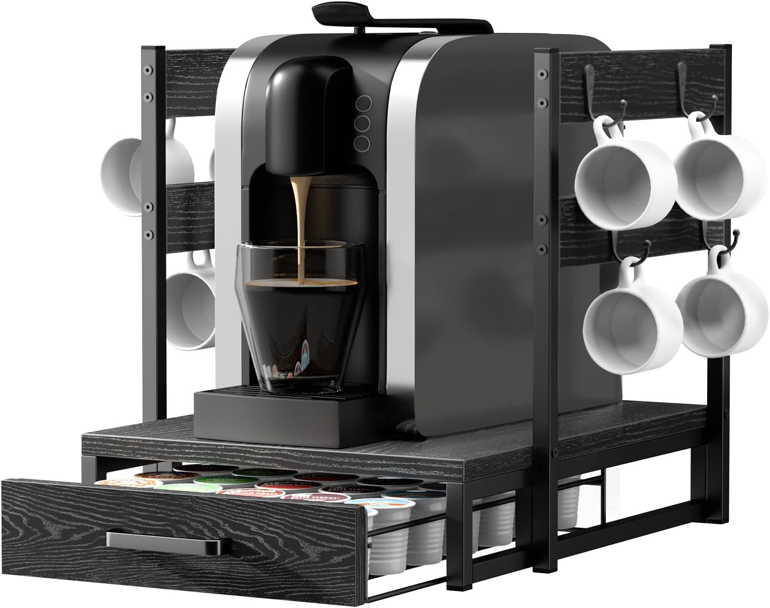 Coffee Pod Drawer for K Cup, 35 Pods K-Cup Holder Organizer with Cup Holder, Durable Coffee Maker Stand with Storage Drawer, Black