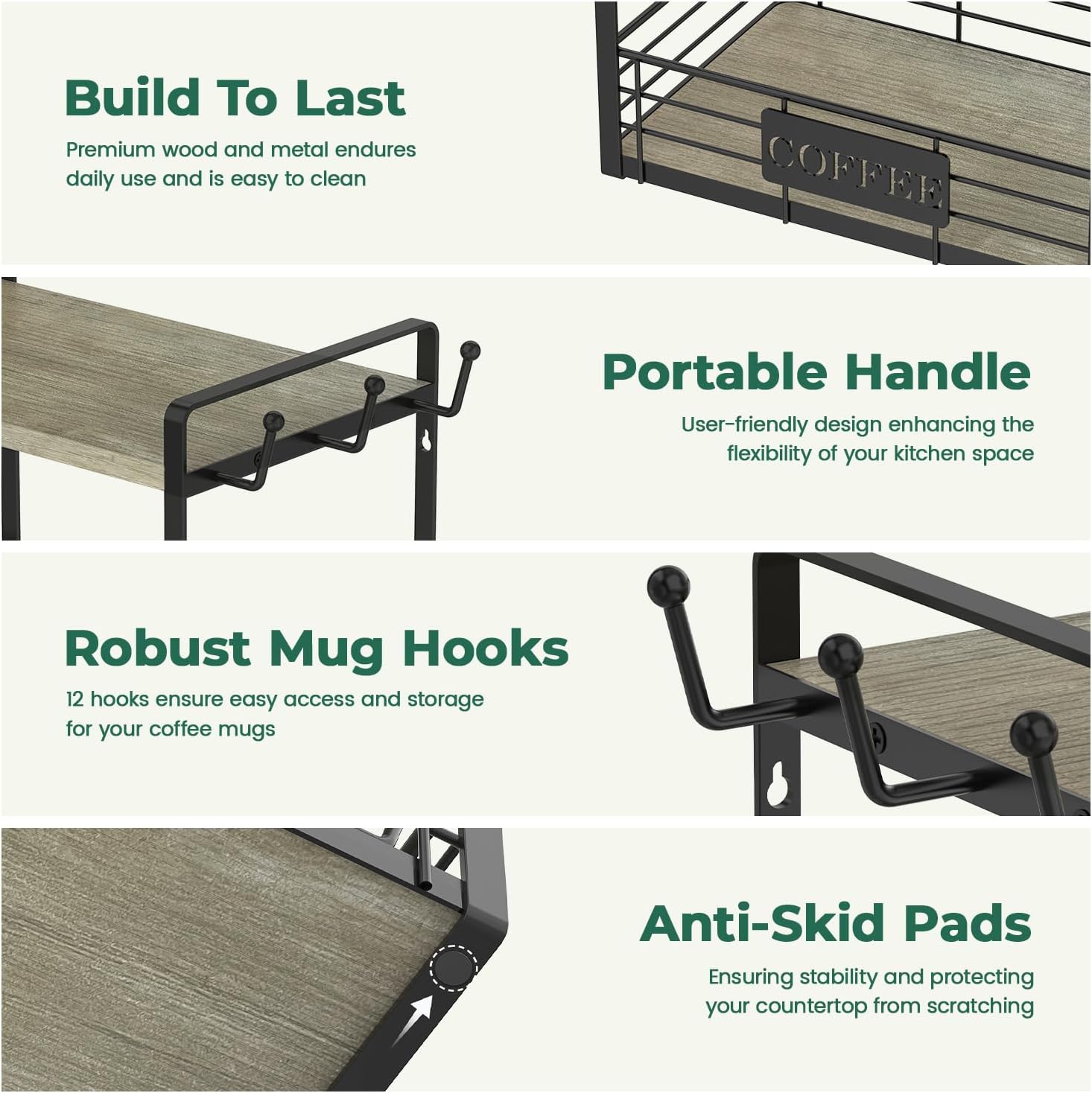 - Space-Saving Solution: Optimize your kitchen space with our compact yet capacious coffee mug rack organizer, perfect for streamlining any coffee station setup