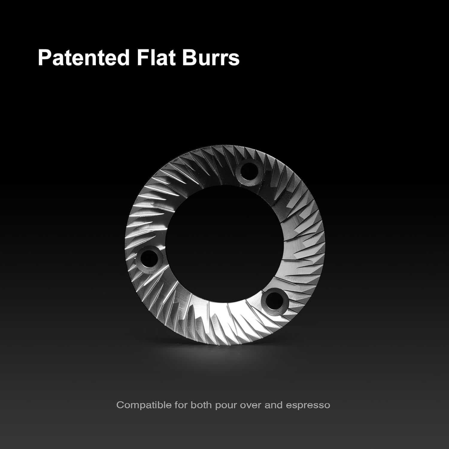 - [ Sensory Brushless Motor ] Our Burr Coffee Grinder uses a zero-friction motor with PID control and Hall elements for smoother operation, longer lifespan, and greater stability. Unlike traditional brushed motors, it doesn’t shake during use, providing a more precise grind every time.