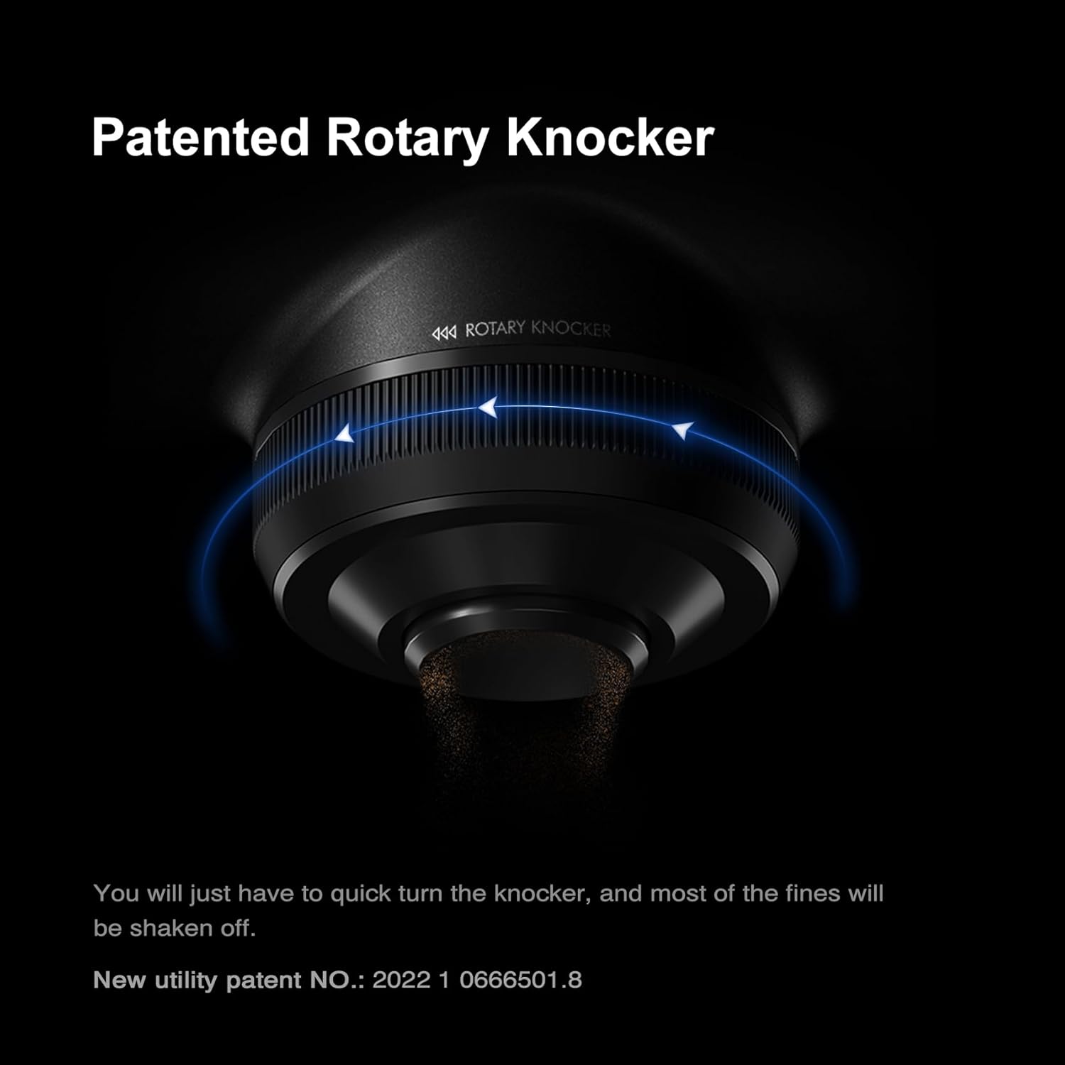 - [ Patented Rotary Knocker ] Ordinary coffee grinder lt's usually difficult to clean fines thoroughly from the grinderspout. Sculptor 064S coffee grinder designed this rotary knocker to have fines cleanedeffectively, You will just have to quick turn the knocker, andmost of the fines will be shaken off.