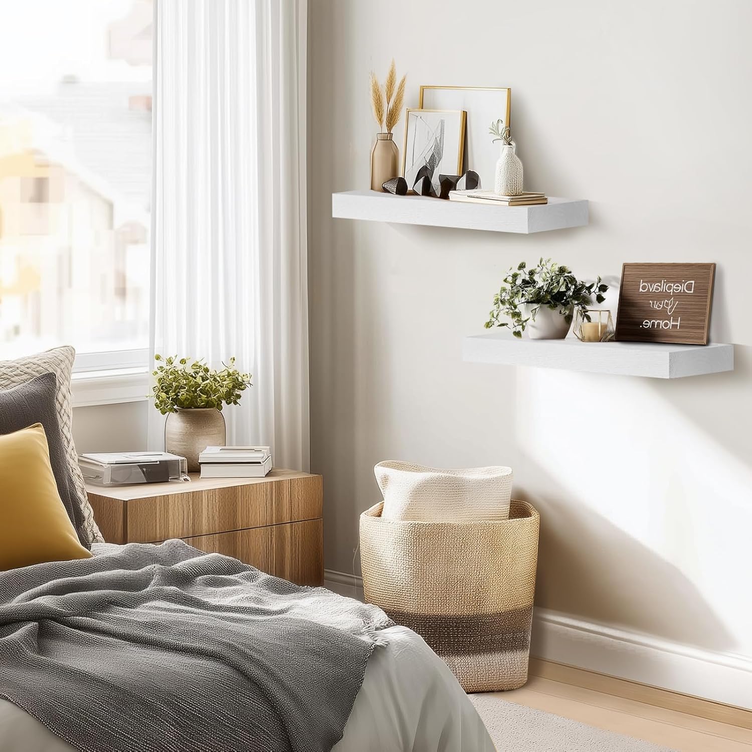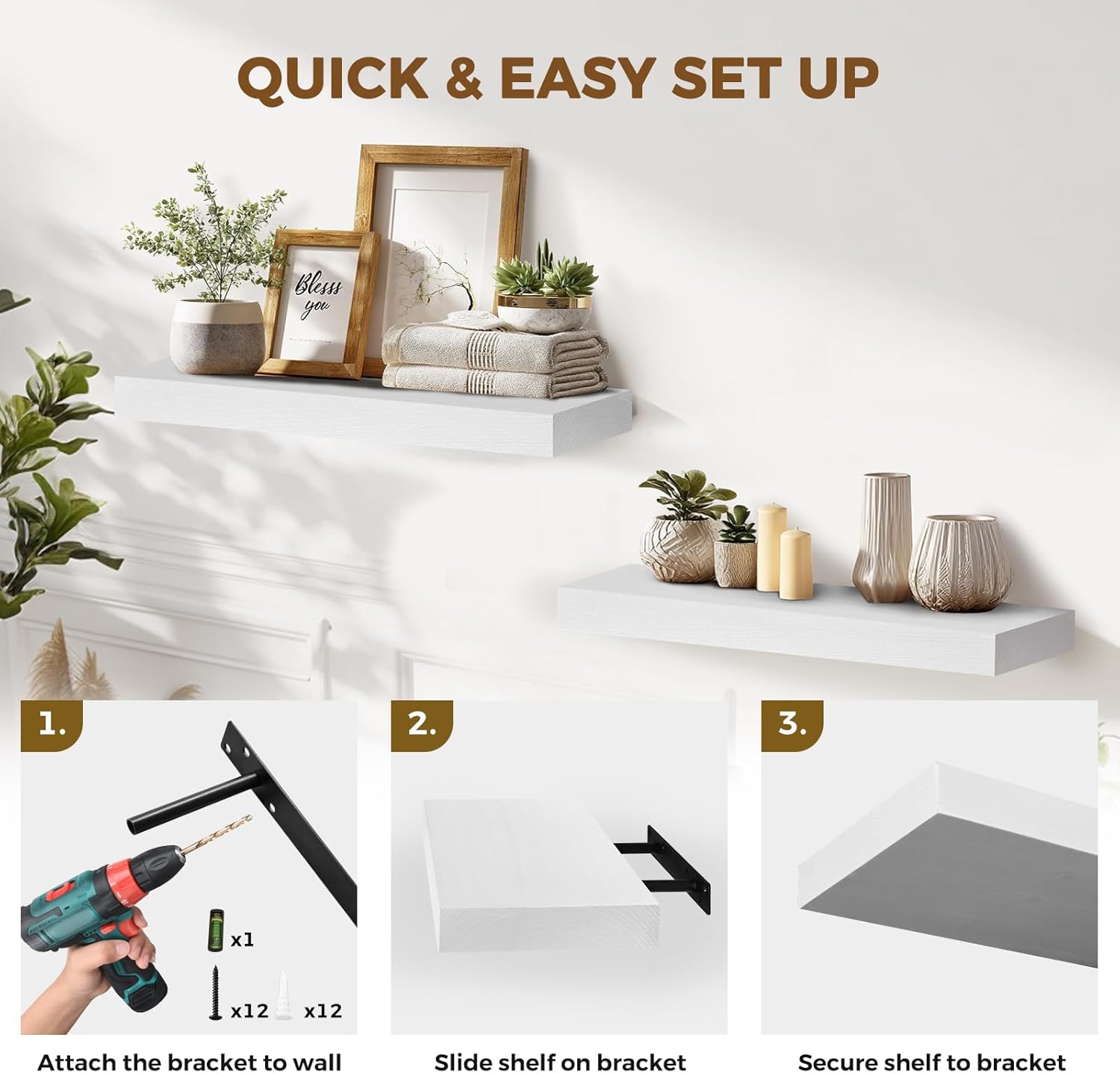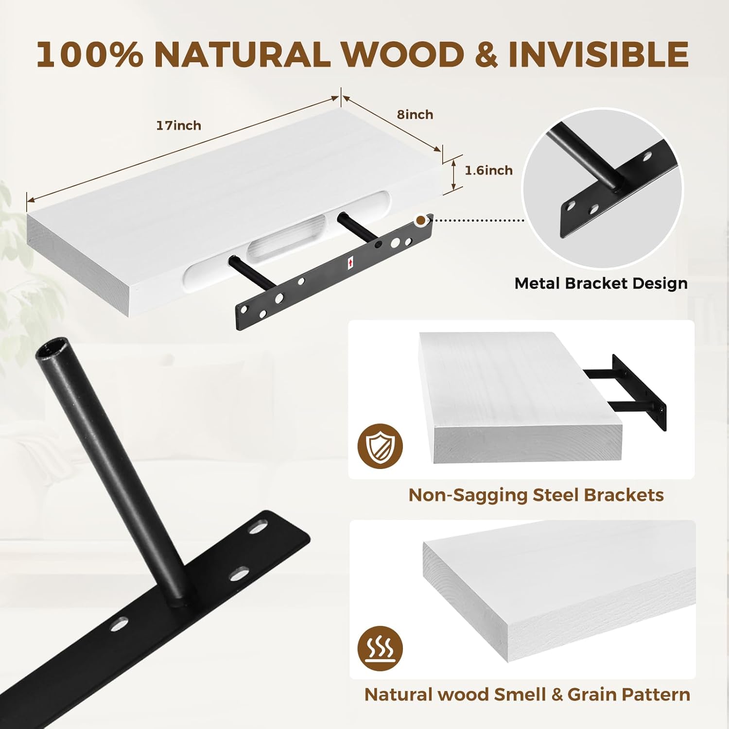 17x8x1.6 inch Floating Shelves Set of 2 – Solid Wood Rustic White Wall Mounted Shelf for Kitchen, Bathroom, Living Room
