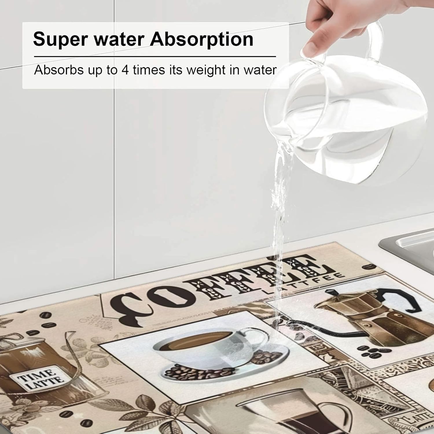 - Size -- 18x24inch/45.7x60.9cm. Different Design On 2 Sides, One Side Can Suck Moisture With Aesthetics Pattern, Another One Gray Non-Slip Side. It Is A Versatile Addition To Your Kitchen. Our Coffee Mats Are A Must-Have Accessory For All Coffee Lovers