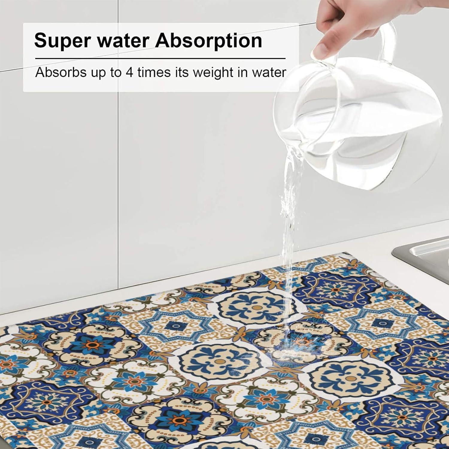 - Widely Used -- The Dish Drying Pad Can Be Placed Anywhere You Need To Absorb Water, Such As Can Be Used On Kitchen Counters, Countertops, Dining Table, Sinks, And Under Dish Racks, Coffee Makers, Coffee Machines, Coffee Pots, Espresso Machines, Coffee Cups, Water Dispensers, Blenders, Also As A Pet Food Mat, Place It Under Pet Drinking Pot To Keep The Floor Dry
