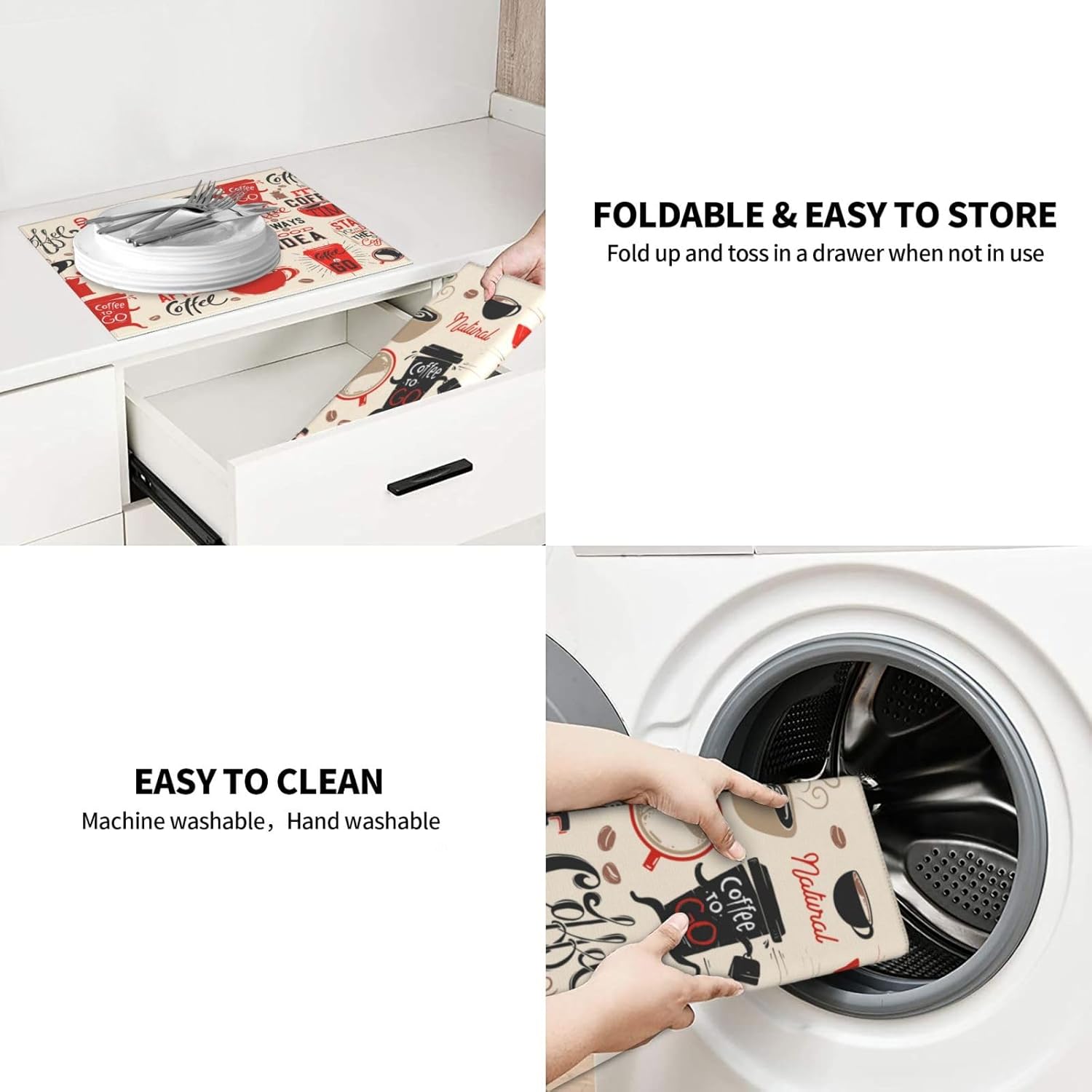 Coffee Themed Dish Drying Mat, Highly Absorbent Microfiber Kitchen Counter Pad Reusable Washable, 16*18"
