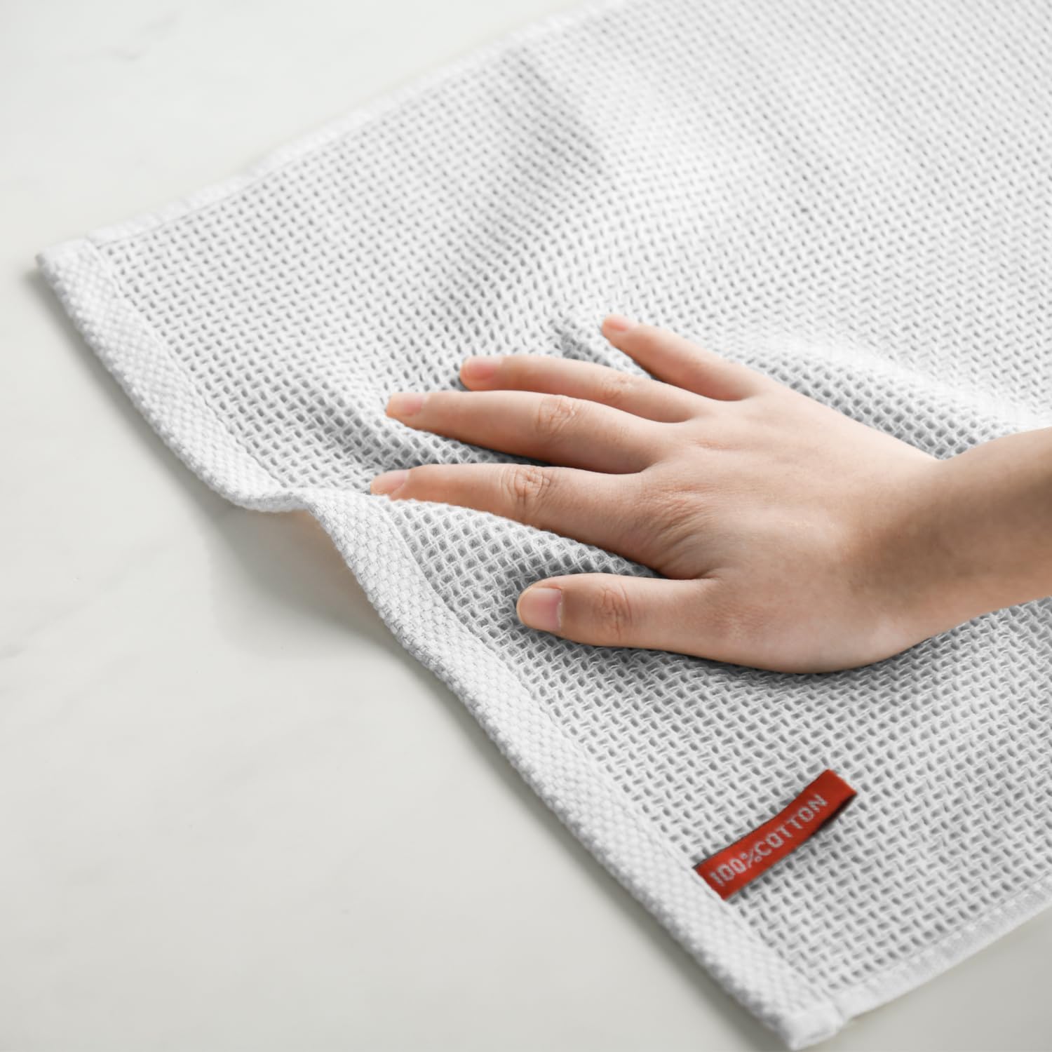 Artoid Mode 100% Cotton Light Grey Waffle Weave Kitchen Dish Cloths, 13x28 Inch Ultra Soft Absorbent Quick Drying Kitchen Dish Towels Set of 4