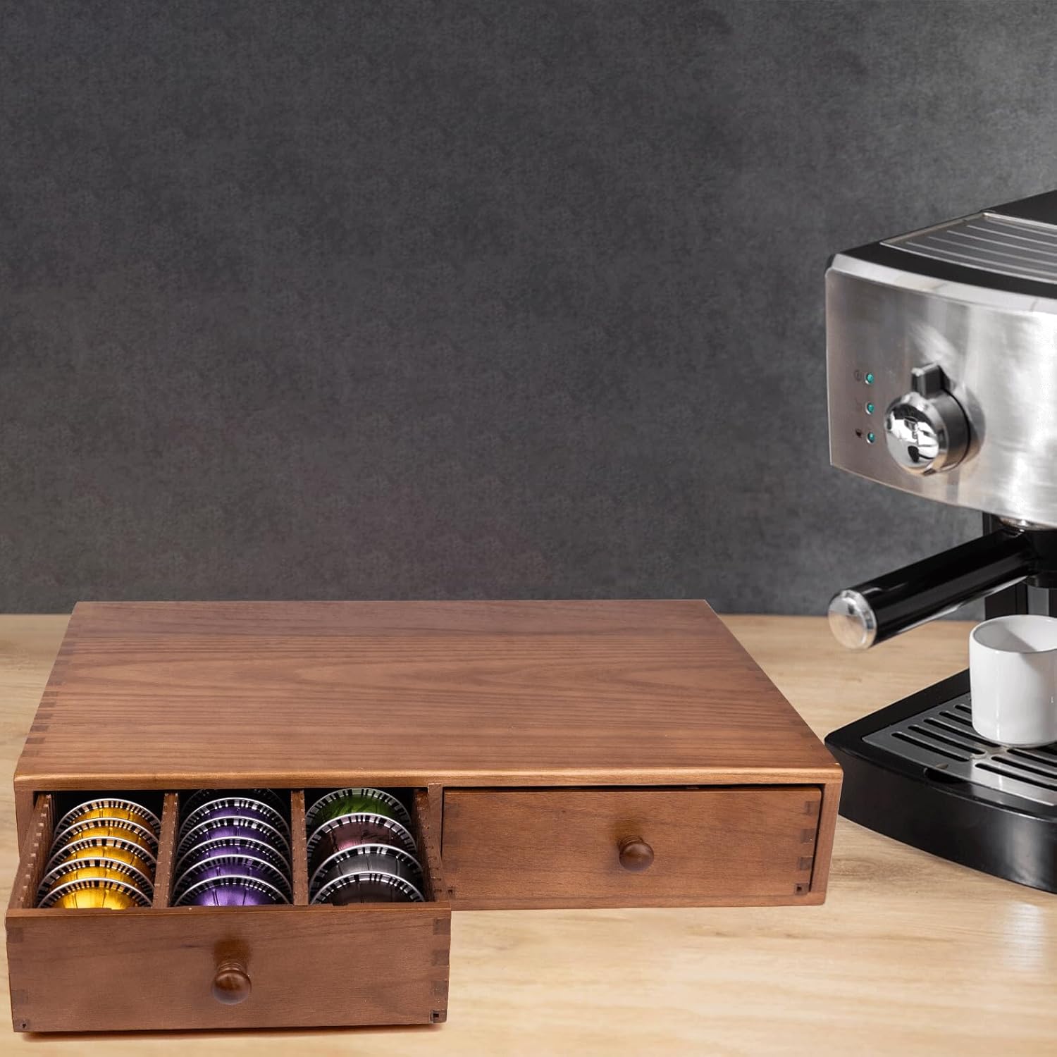 - 【High Quality and Premium Wood】:Our coffee pod storage holder is made from high quality natural wood,so it has a clear and beautiful wood grain, the wooden coffee pods organizer has an overall upscale look, durability and lovely design.