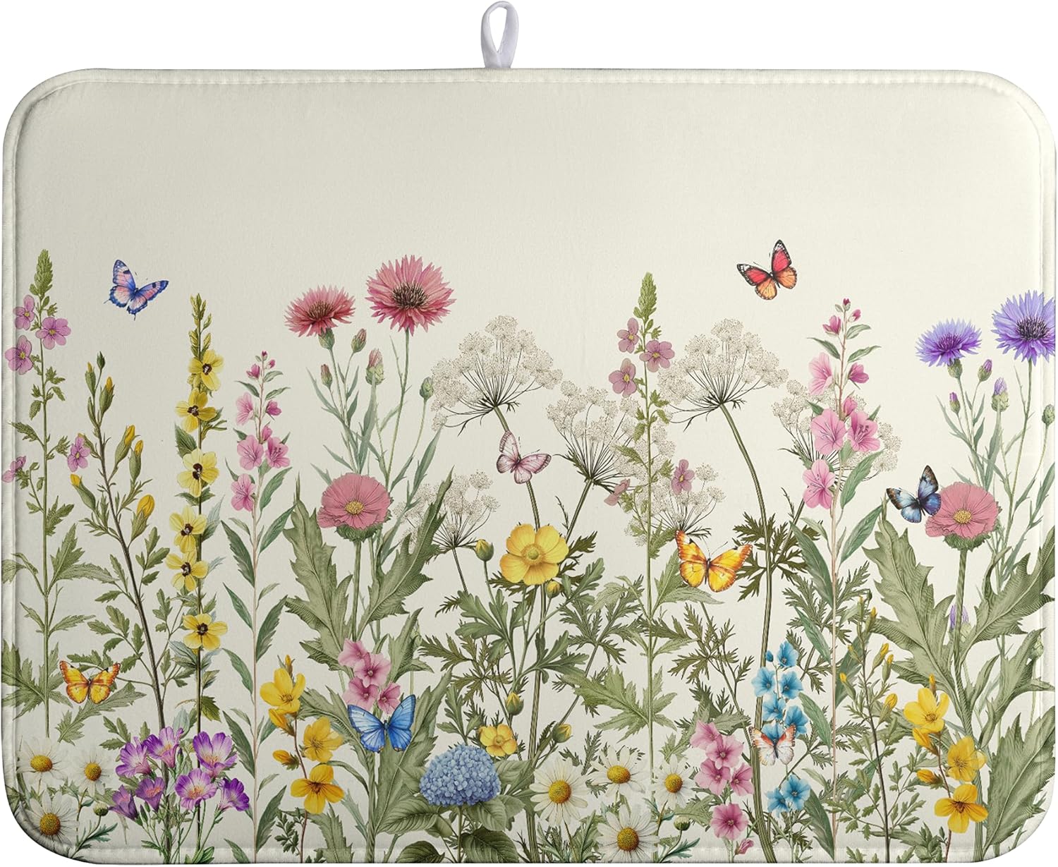 - [Quick Absorption]: Made of absorbent material, our Spring Summer dish drying matt kitchen counter Floral Flowers dish dryer mat for kitchen absorbs water stains quickly, keeping your table top dry and clean, avoiding water stains and leaks, providing you with a pleasant and dry dining or working experience.
