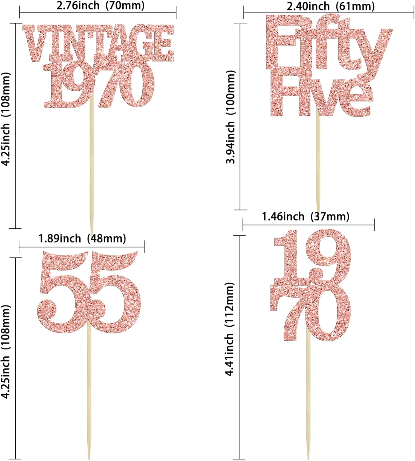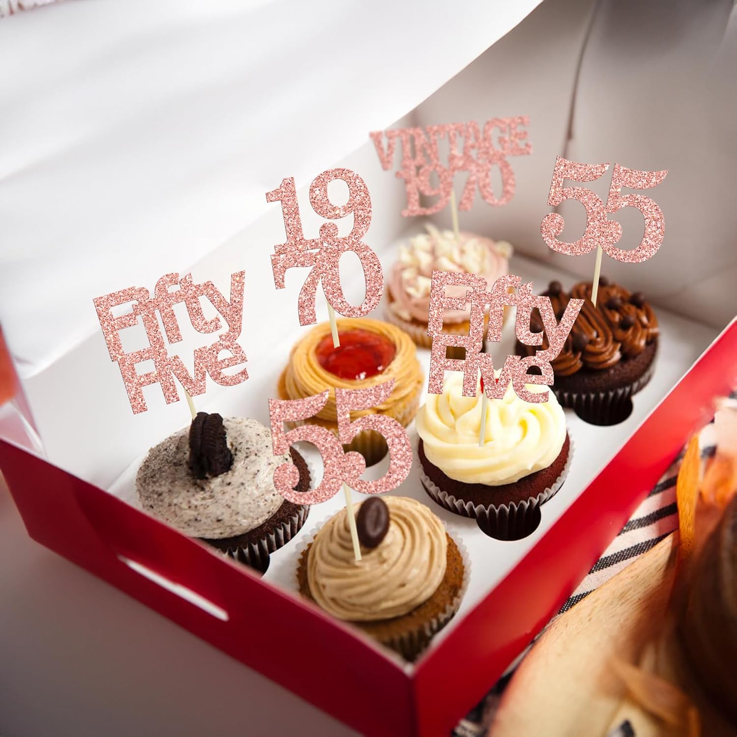 Gyufise 24Pcs 55th Birthday Cupcake Toppers Glitter Cheers to 55 Fabulous Fifty Five Vintage 1970 Cupcake Picks 55th Birthday Wedding Anniversary Party Cake Decorations Supplies Rose Gold