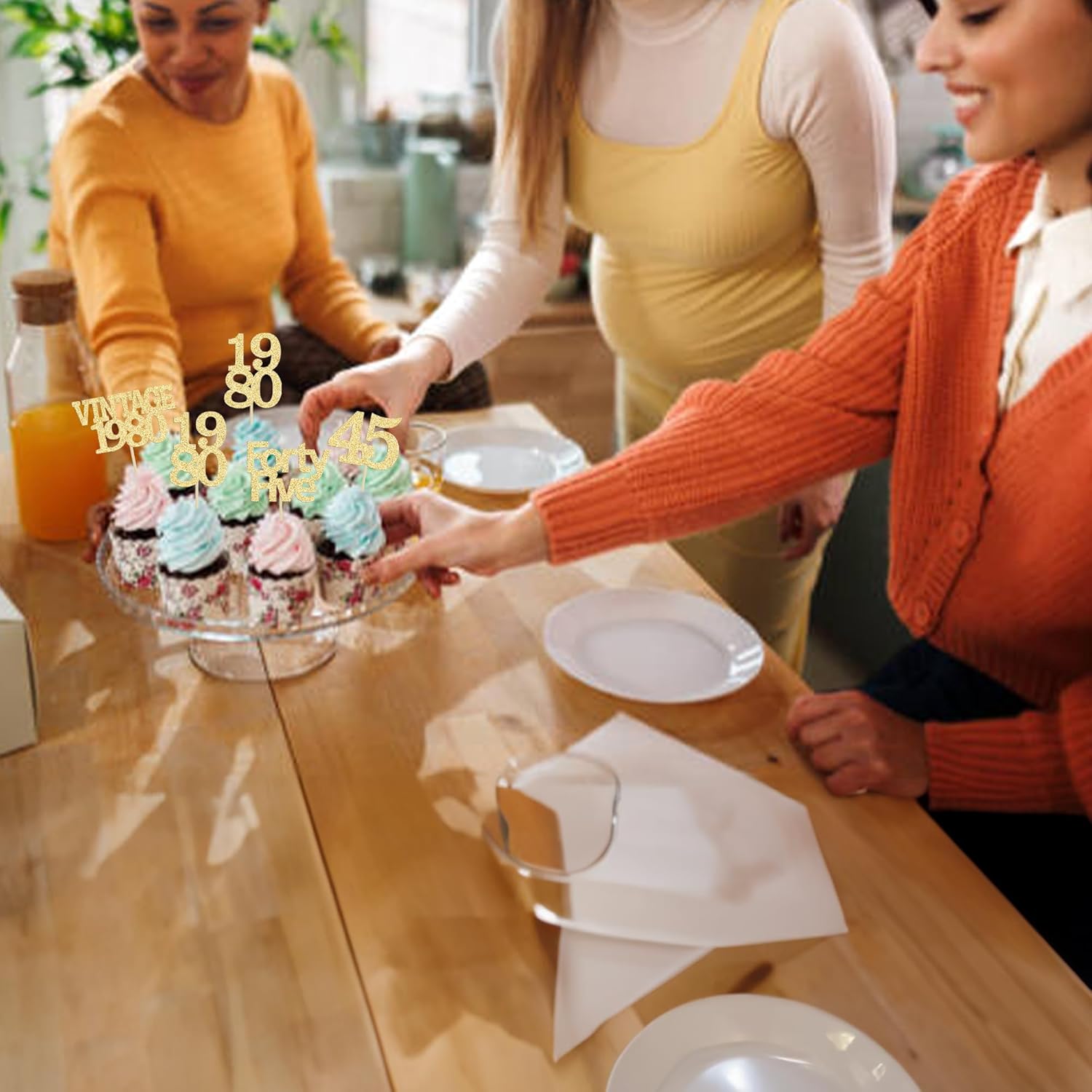 - Package included: 24Pcs 45th Birthday Cupcake Toppers. Comes with assembled, so you can insert into your cake directly, which make your cake more interesting.