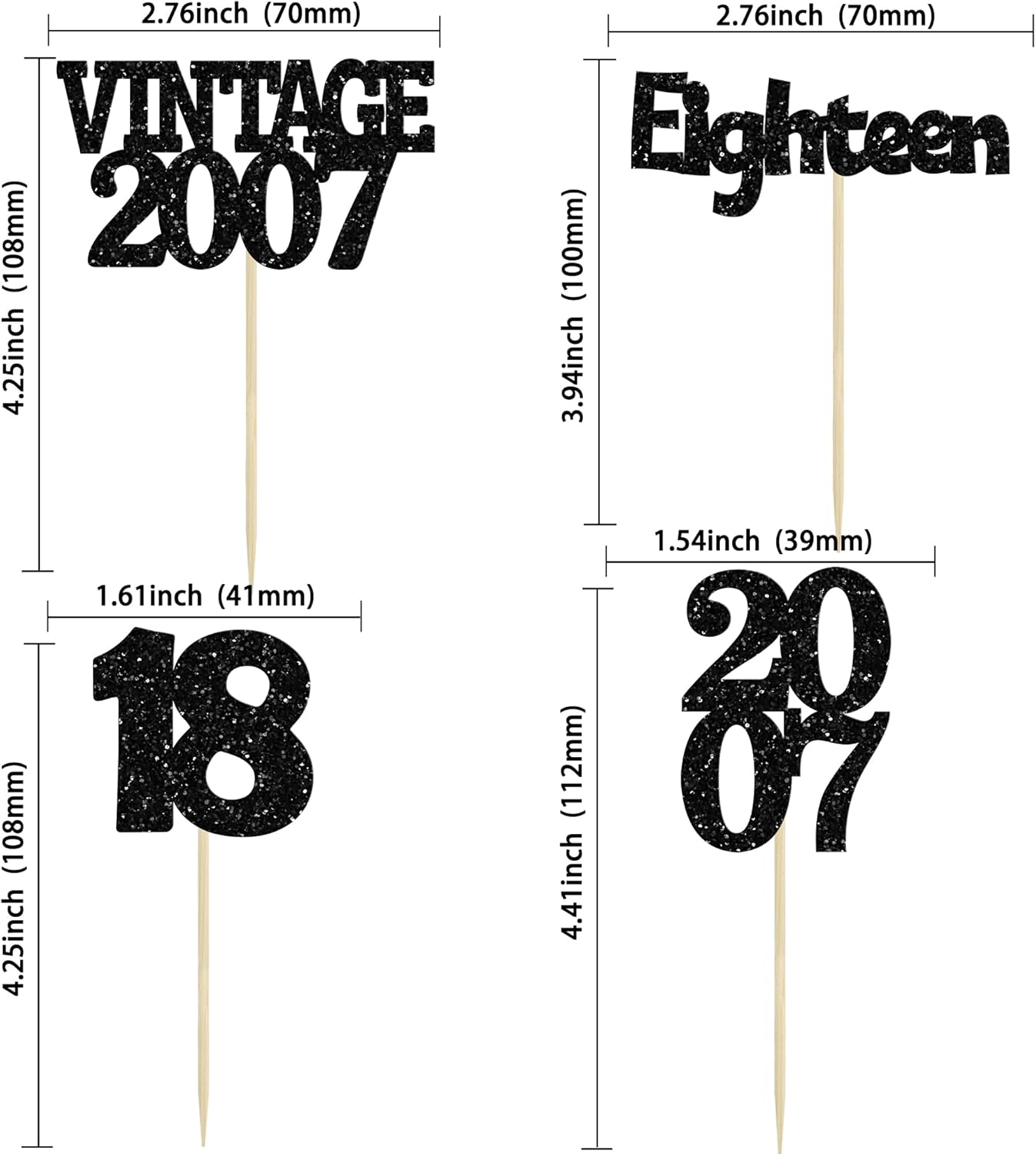 Gyufise 24Pcs 18th Birthday Cupcake Toppers Glitter Eighteen Vintage 2007 Adultish 18 Cupcake Picks Hello 18 Years Birthday Cake Decorations for Happy 18th Birthday Anniversary Party Supplies Black