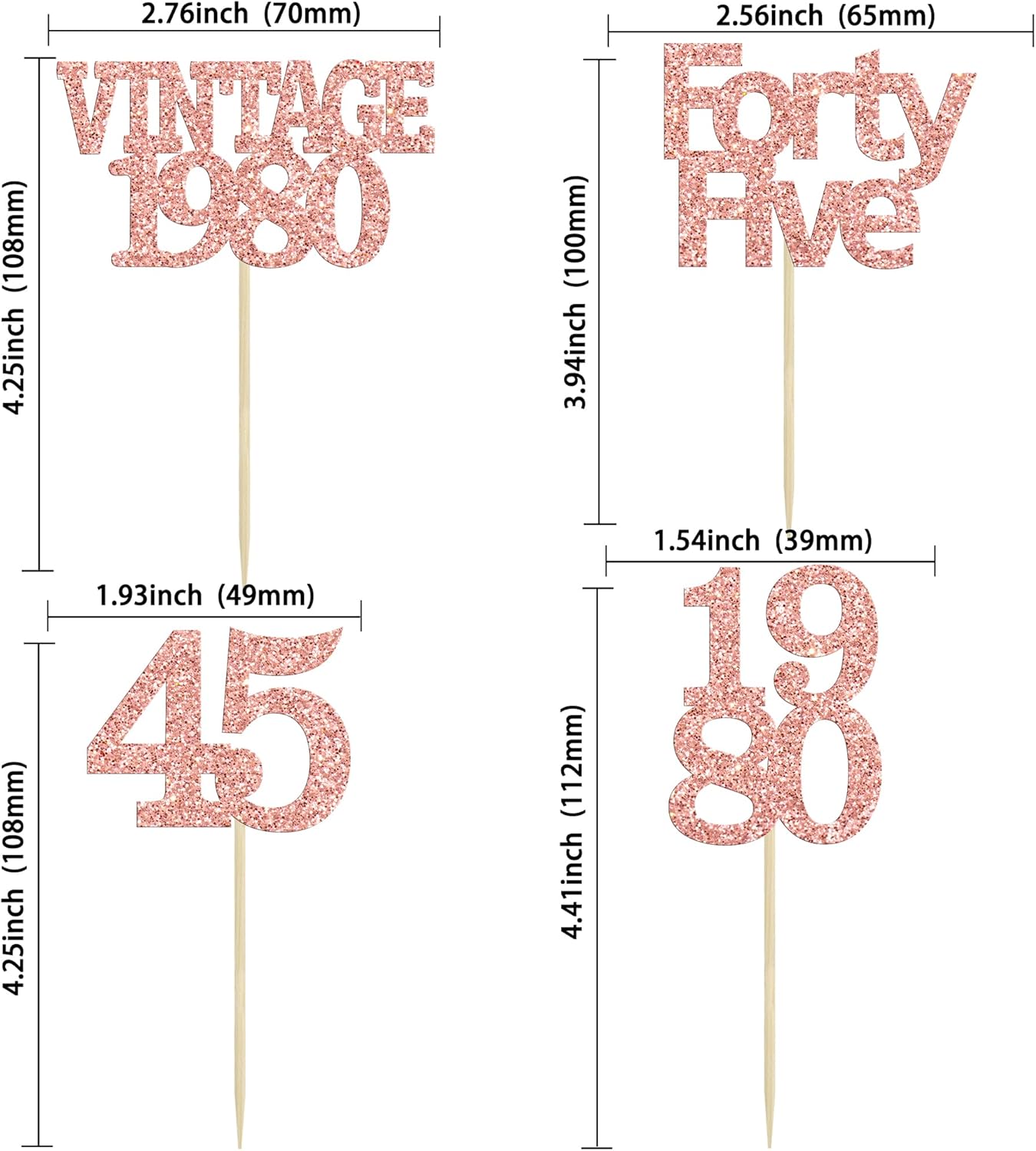 - Premium Material: These 45th Birthday Cupcake Toppers are made of high quality 300 gram card stock and food-grade toothpick, very safe to put them on cakes, cupcakes, ice cream, fruits, pie, dessert, cheese or any dish and food appetizer you want to decorate Valentine theme party decorations.