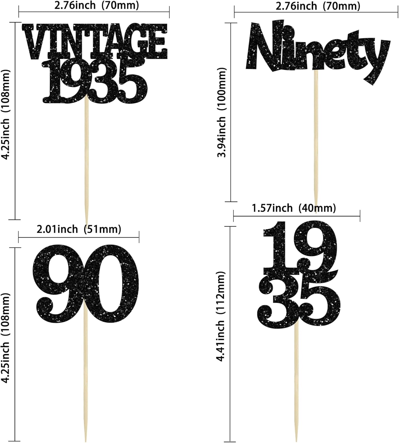- Package included: 24Pcs 90th Birthday Cupcake Toppers. Comes with assembled, so you can insert into your cake directly, which make your cake more interesting.