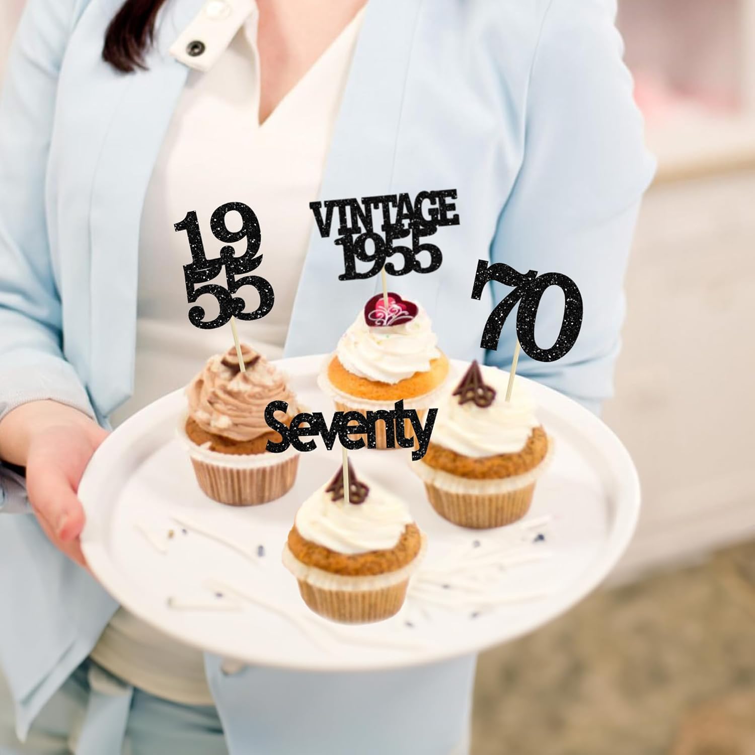 - Package included: 24Pcs 70th Birthday Cupcake Toppers. Comes with assembled, so you can insert into your cake directly, which make your cake more interesting.