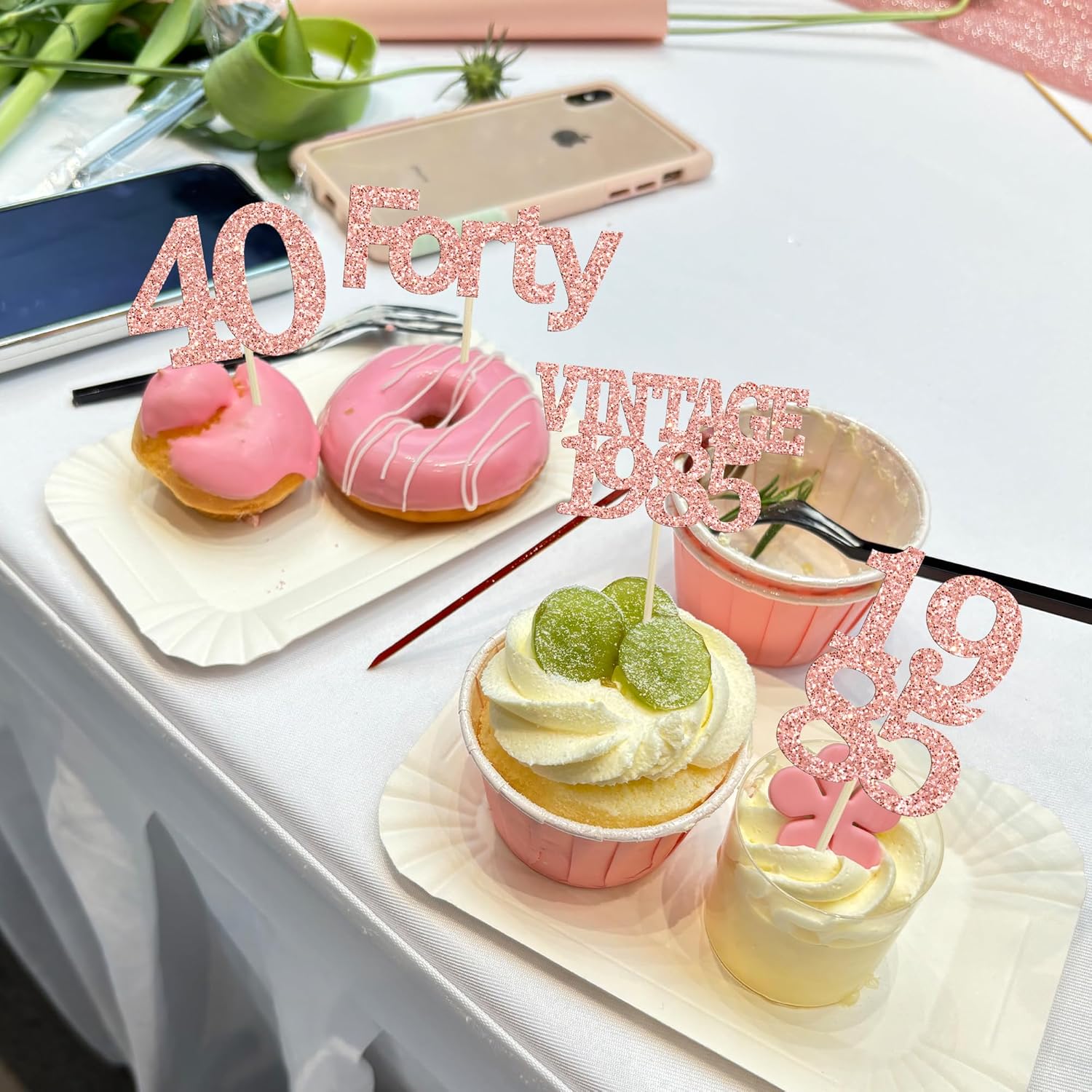 Gyufise 24Pcs Happy 40th Birthday Cupcake Toppers Glitter Forty 40 Fabulous Vintage 1985 Cake Toppers for 40th Birthday Wedding Anniversary Party Cake Decorations Supplies Rose Gold