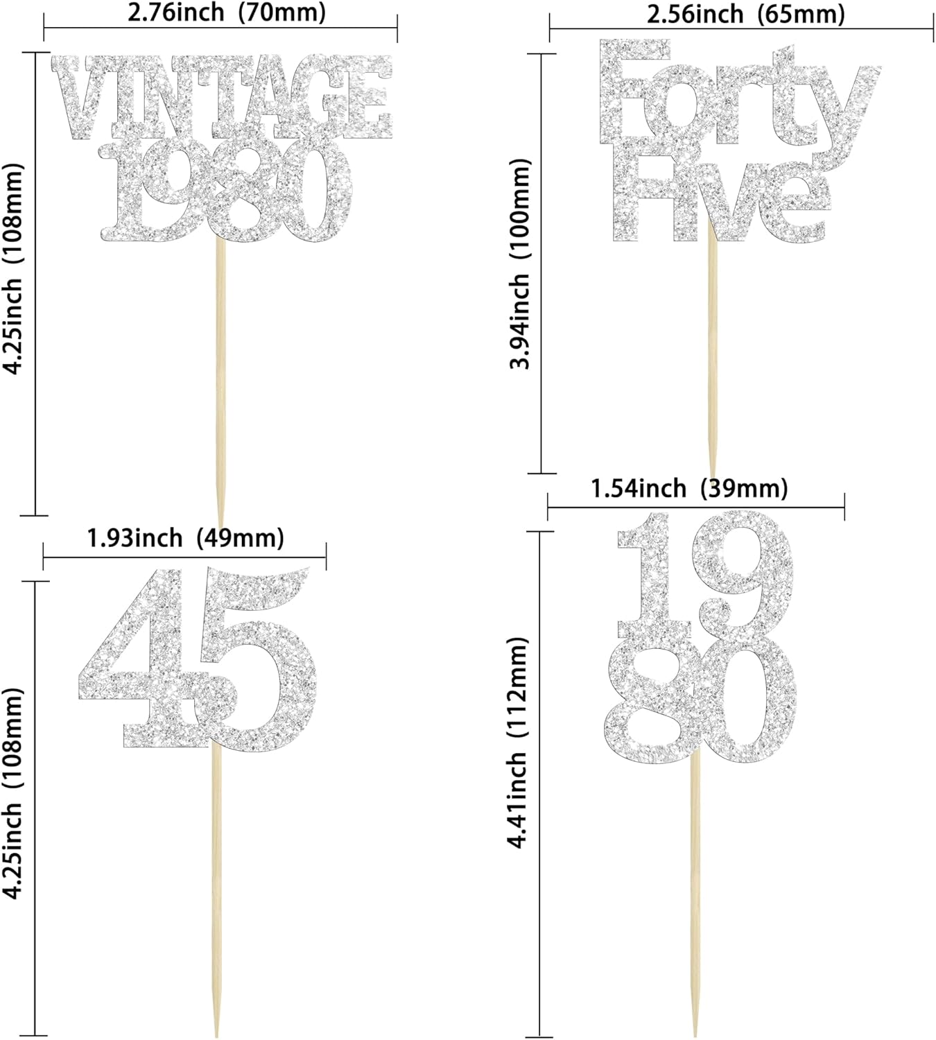 - Package included: 24Pcs 45th Birthday Cupcake Toppers. Comes with assembled, so you can insert into your cake directly, which make your cake more interesting.