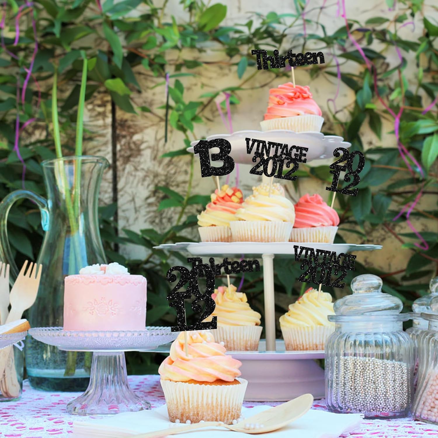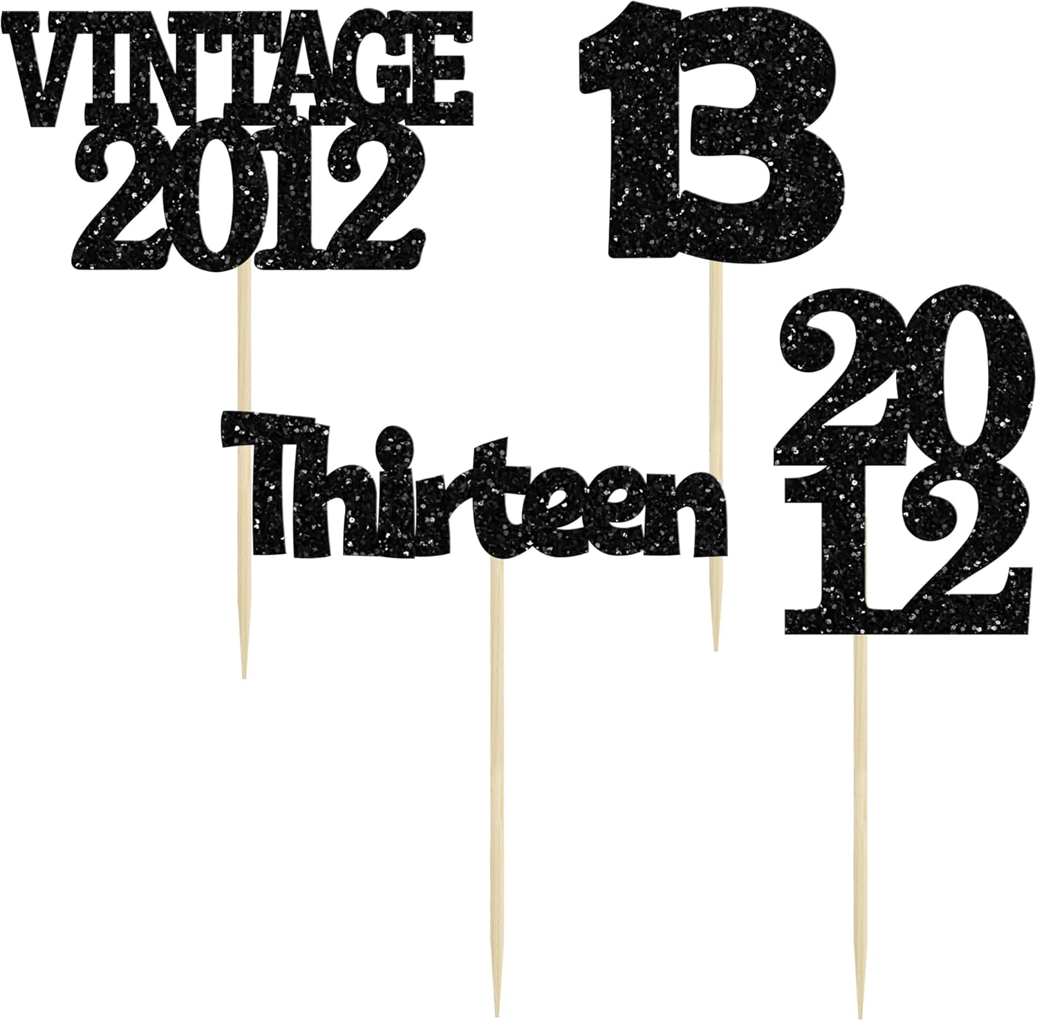 Gyufise 24Pcs 13th Birthday Cupcake Toppers Glitter Thirteen Vintage 2012 Official Teenager 13 Cupcake Picks 13 Years Birthday Cake Decorations for Happy 13th Anniversary Party Supplies Black