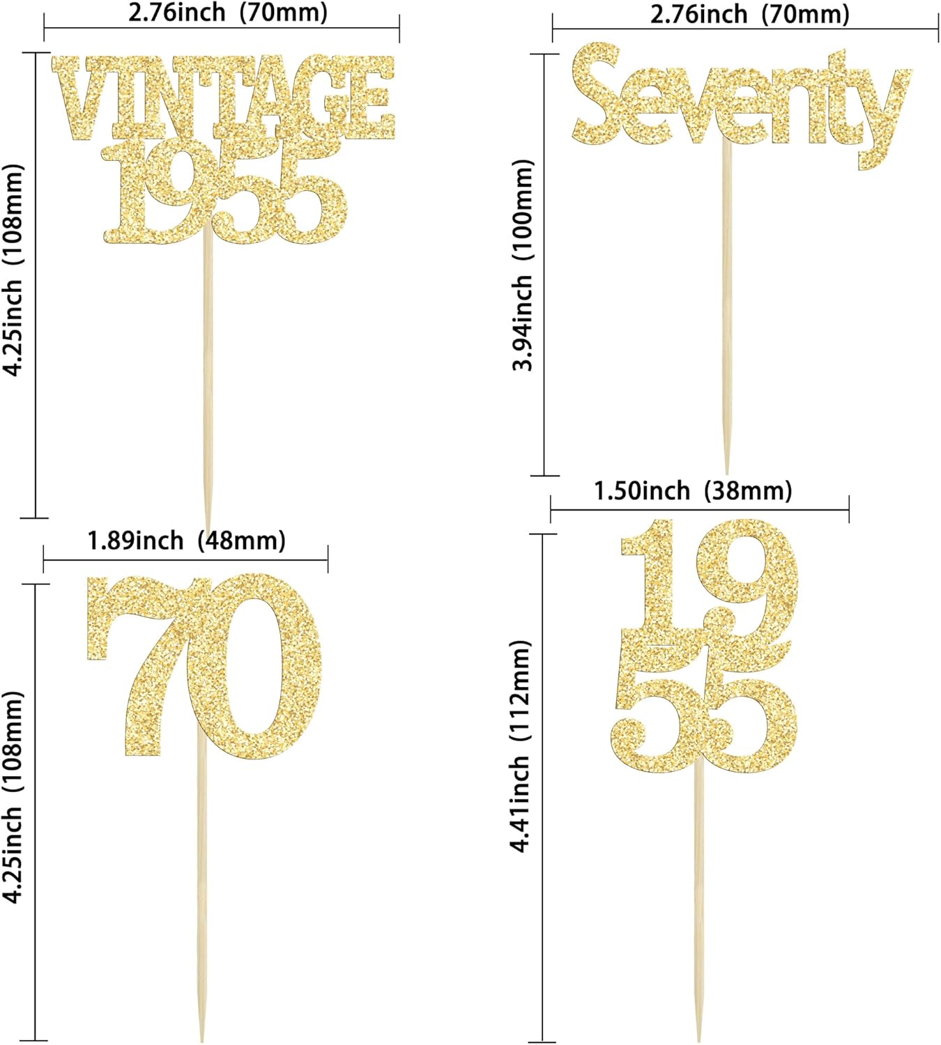 Gyufise 24Pcs 70th Birthday Cupcake Toppers Glitter Cheers to 70 Fabulous Seventy Vintage 1955 Cupcake Picks 70th Birthday Wedding Anniversary Party Cake Decorations Supplies Gold