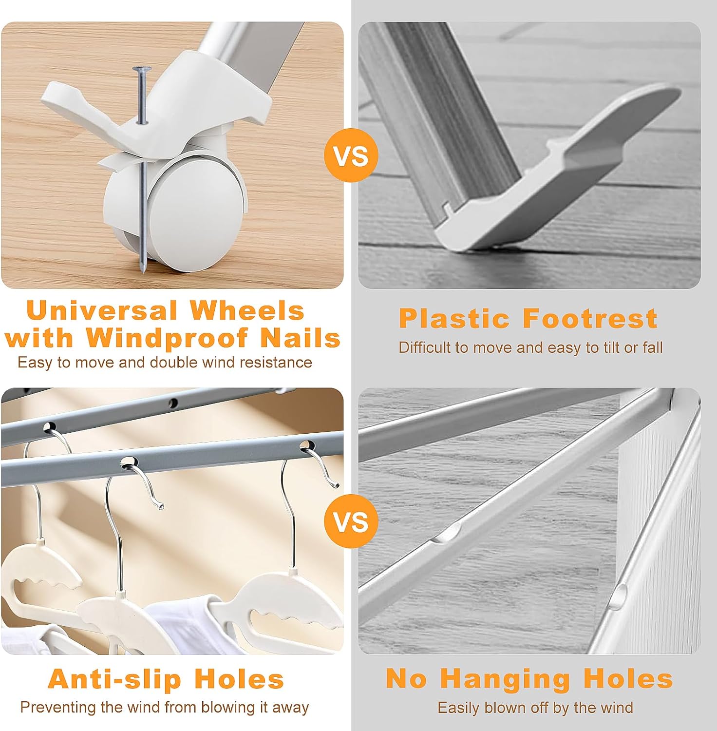 - ใ๐๐ข๐ญ๐ก ๐๐ง๐ญ๐ข-๐๐ฅ๐ข๐ฉ ๐๐จ๐ฅ๐๐ฌใCollapsible clothes drying rack comes with 16 aluminum alloy drying rods with 4 anti-slip holes on each rod. The anti-slip holes can effectively prevent clothes from slipping off the drying rods or being blown to the ground by the wind and getting dirty. The capacity of 16 drying rods and 64 hanging holes is enough to meet any need, so you don't have to worry about all the clothes being too close together or stacked, or too complicated to hang, it's very practical.