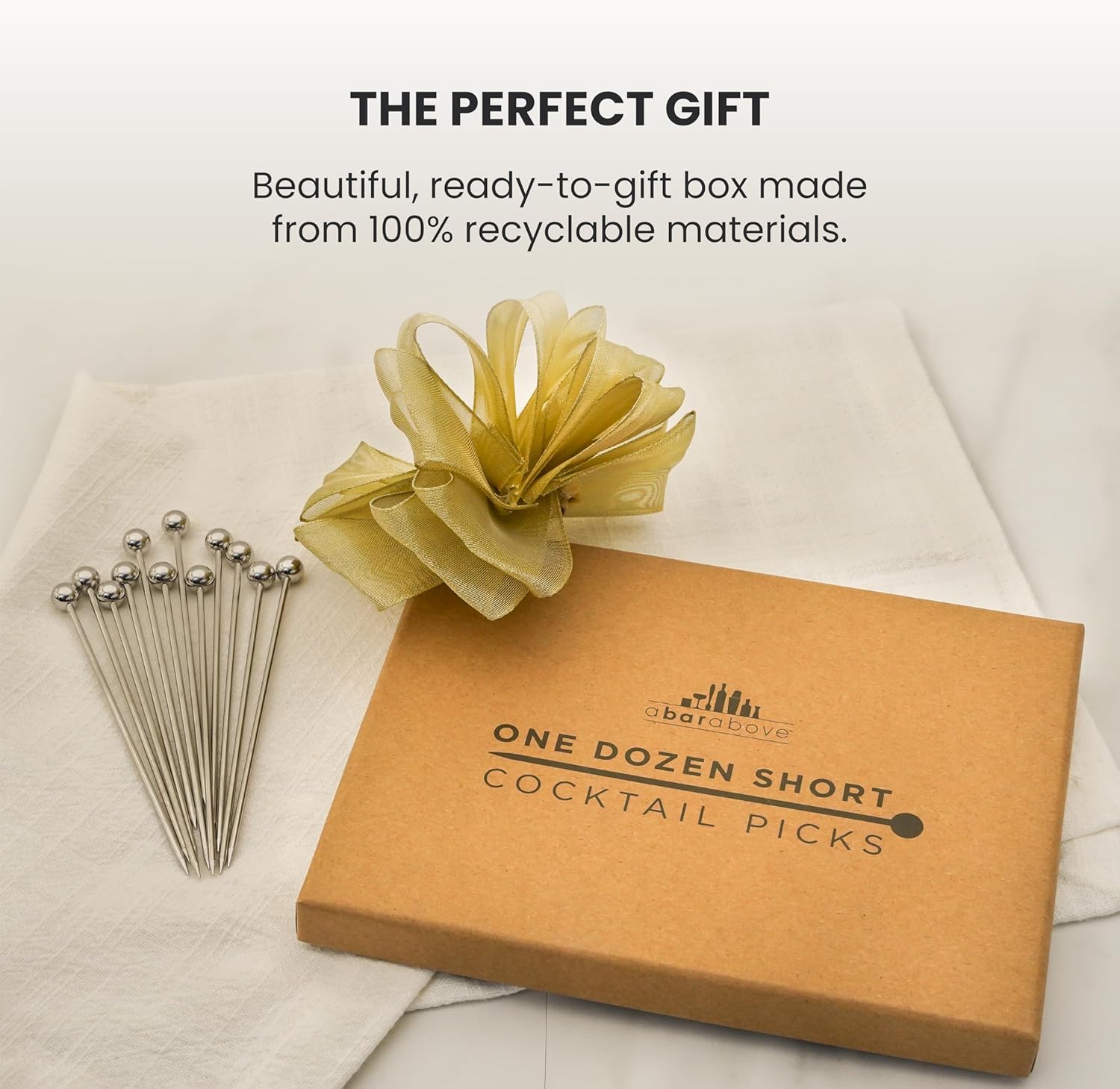 - Stylish Drink Picks Cocktail Set: Enjoy the variety of snacks and beverages served at your party with A Bar Above’s short cocktail sticks for drinks and appetizers. These reusable metal stir sticks for cocktails are an excellent option for decorating your aperitif glass and enjoying garnishes without worrying about single-use toothpicks that end up in the landfill