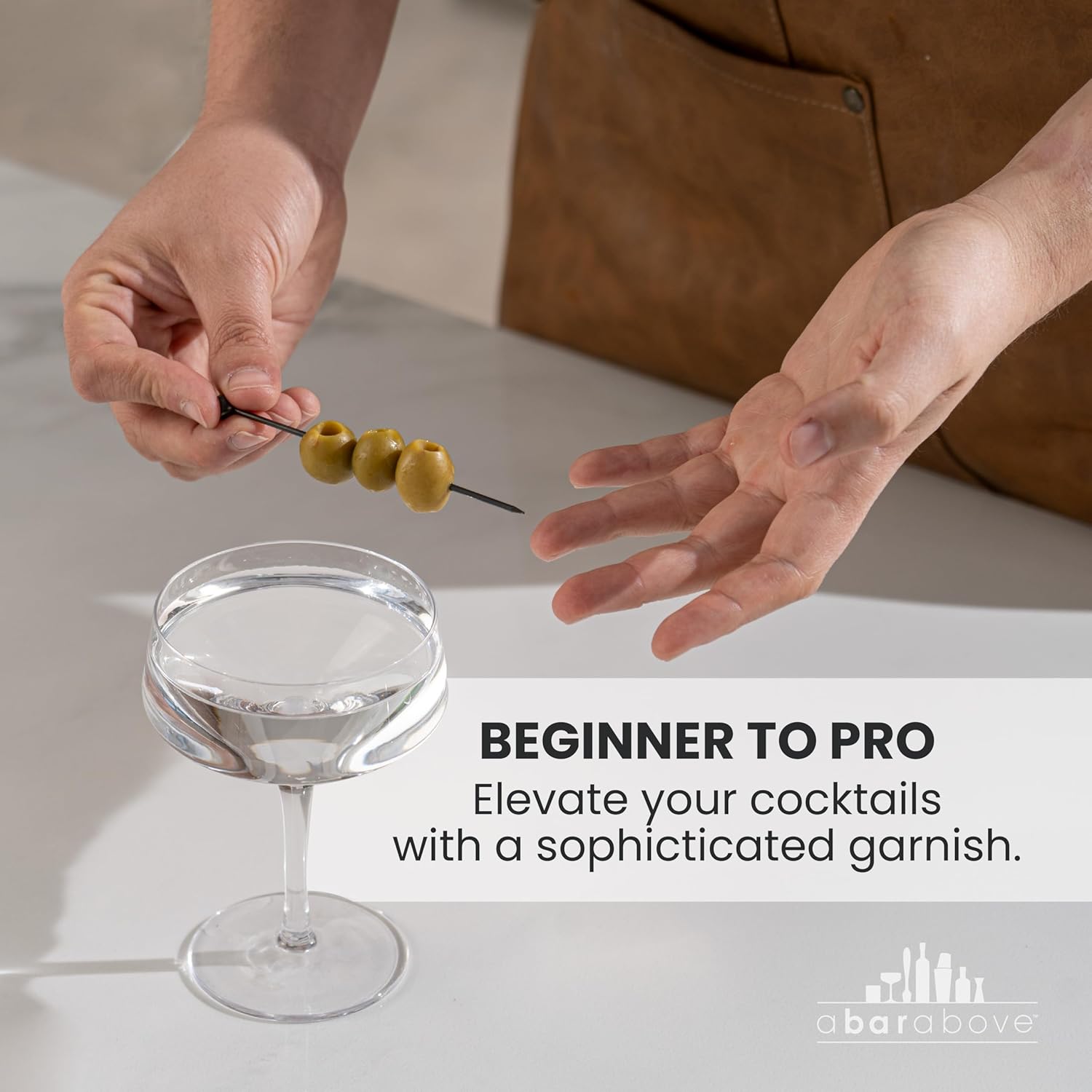 - Stylish Drink Picks Cocktail Set: Enjoy the variety of snacks and beverages served at your party with A Bar Above’s short cocktail sticks for drinks and appetizers. These reusable metal stir sticks for cocktails are an excellent option for decorating your aperitif glass and enjoying garnishes without worrying about single-use toothpicks that end up in the landfill.