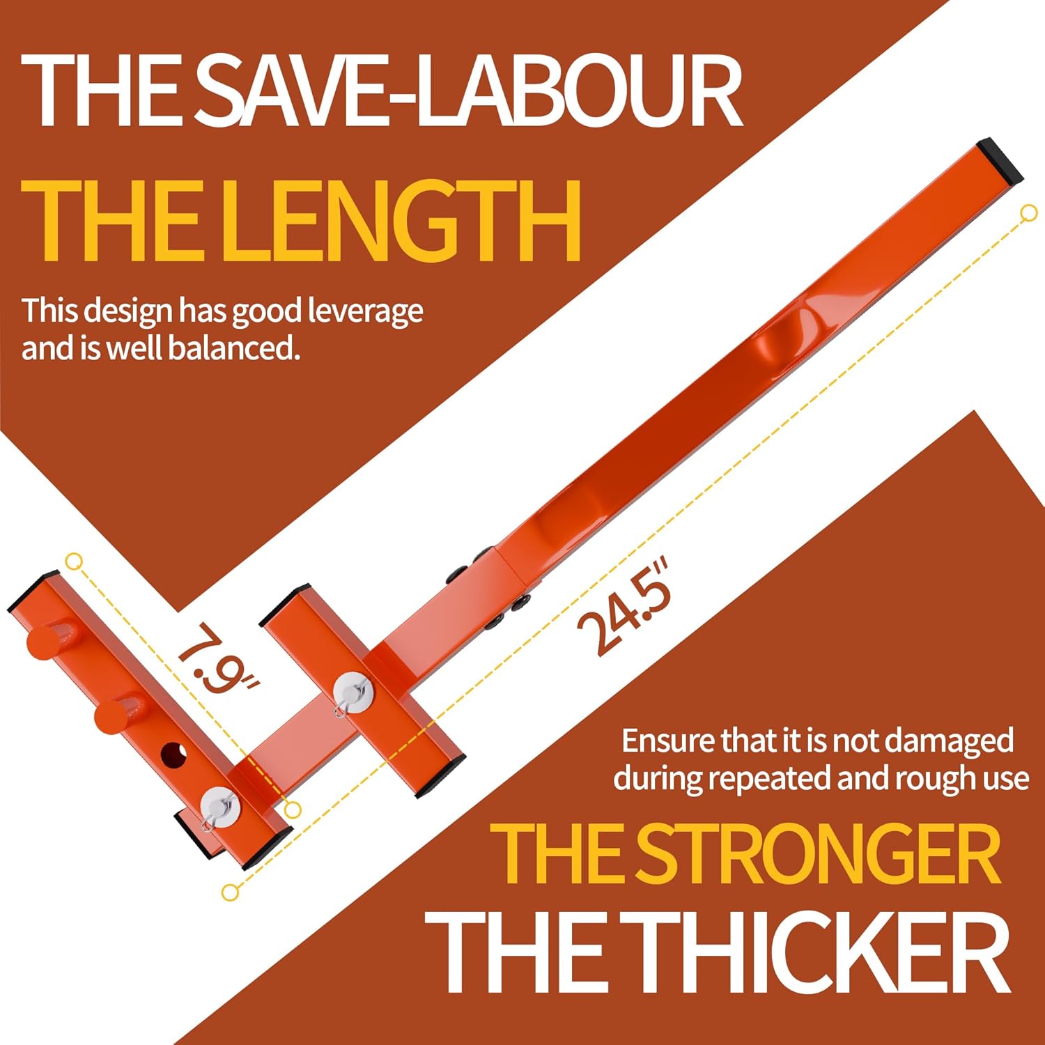 - Heavy Duty Steel:This sturdy deck dragging tool is made of heavy-duty steel with an orange powder-coated finish to prevent rust, and its thicker, stronger construction ensures that it can be used over and over again and won't break after rough handling.