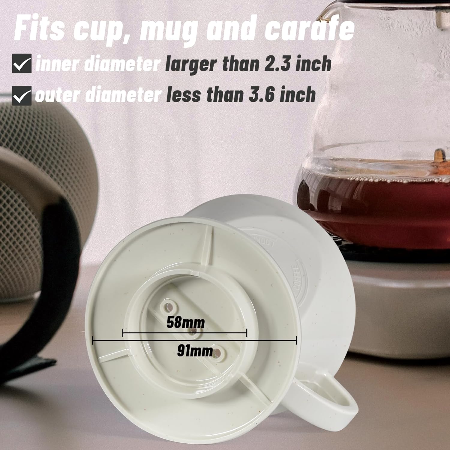 - Versatile Compatibility: The dripper's standard size fits most mugs and carafes diameter of 2.3" to 3.6“, allowing you to brew directly into your favorite cup or server