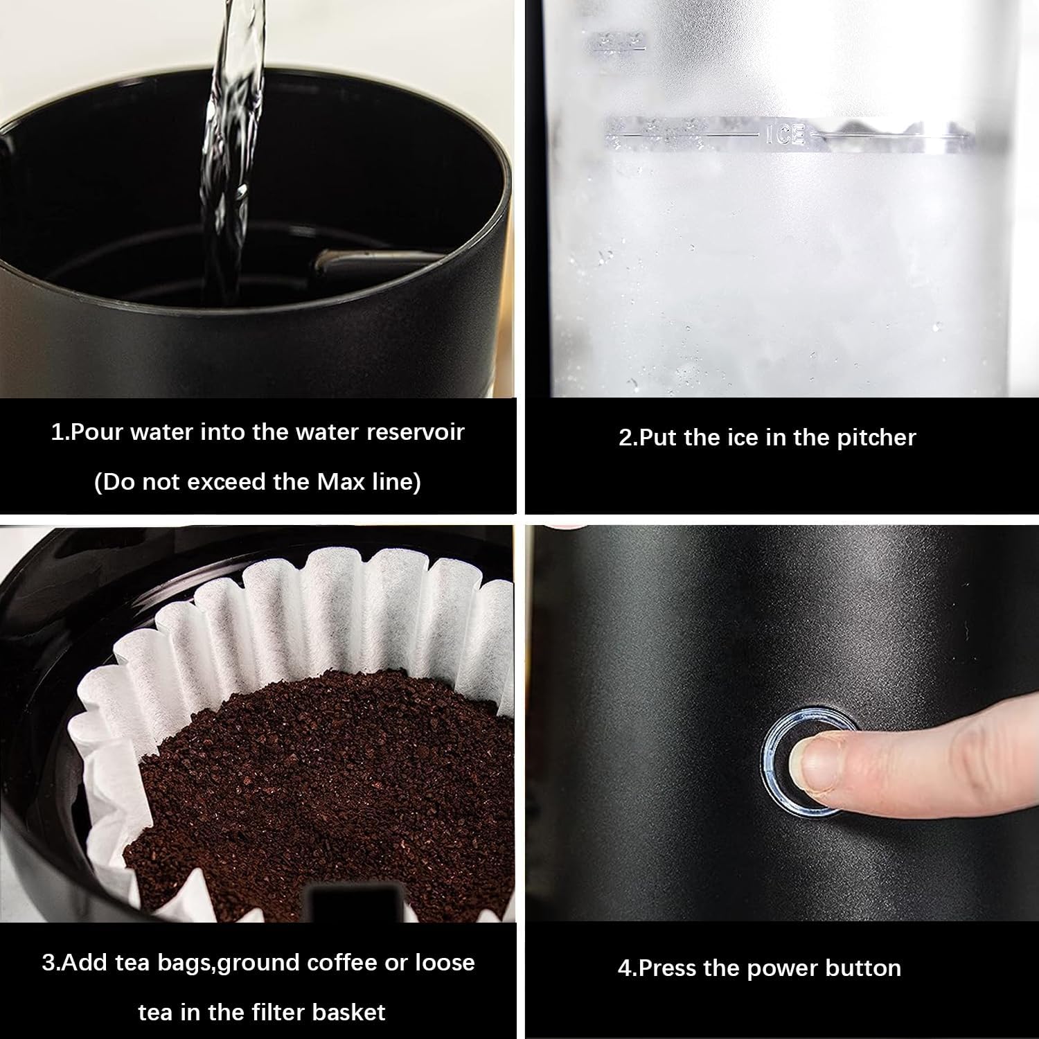 - 【One-button Control & Auto Shut-off Function】Cold brew iced coffee machine is easy to operate. Brew ground coffee, tea bags or loose tea , press the button, then auto shut-off after brewing, which ensures safety,add your favorite sweetener, fresh or frozen fruit for endless delicious recipes , refreshing iced tea in minutes.