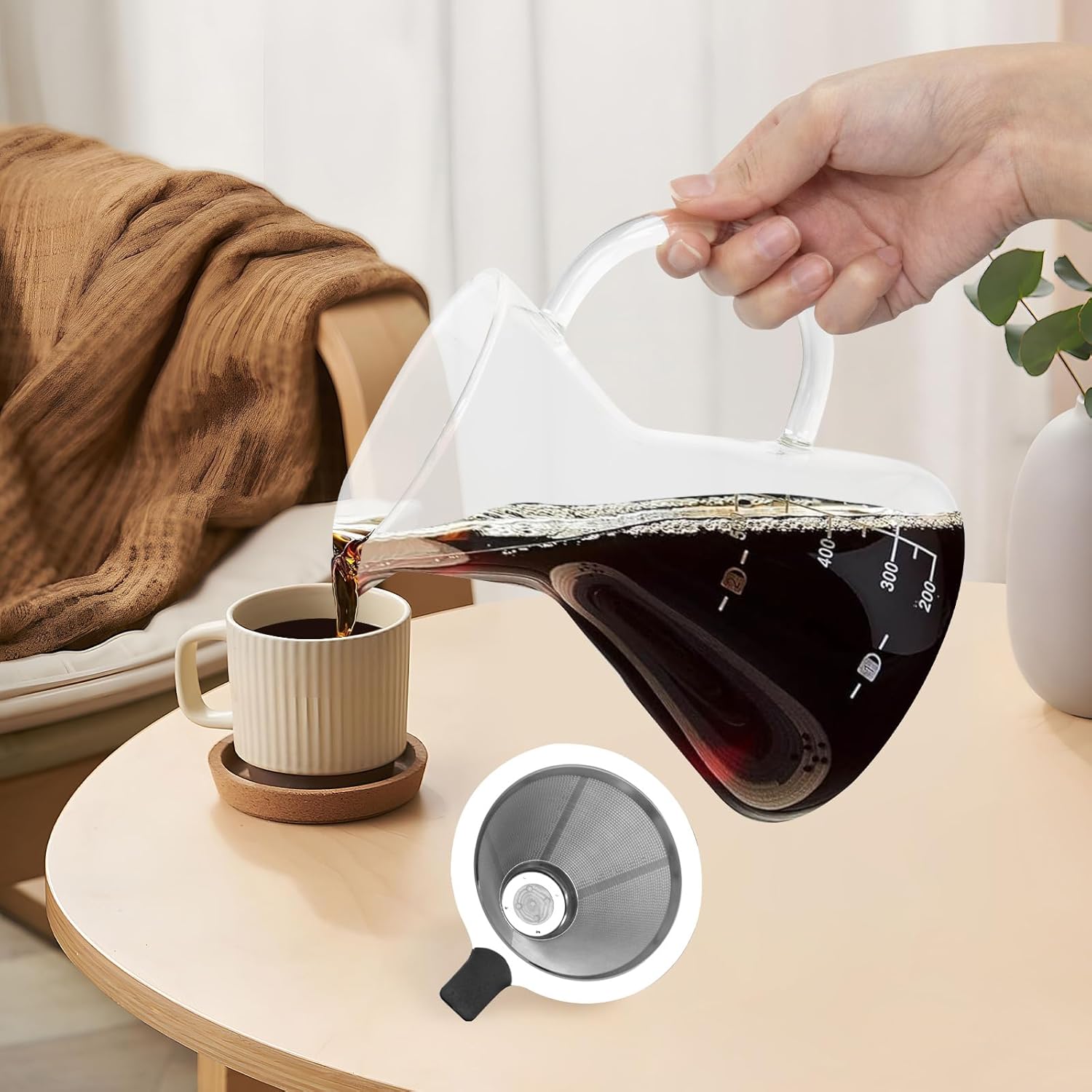 - Ergonomic Design for Comfort: This pour over glass coffee maker features an easy-grip handle and anti-drip spout, ensuring safe handling and precise pouring without spills or burns, enhancing your enjoyment with every pour-over coffee session