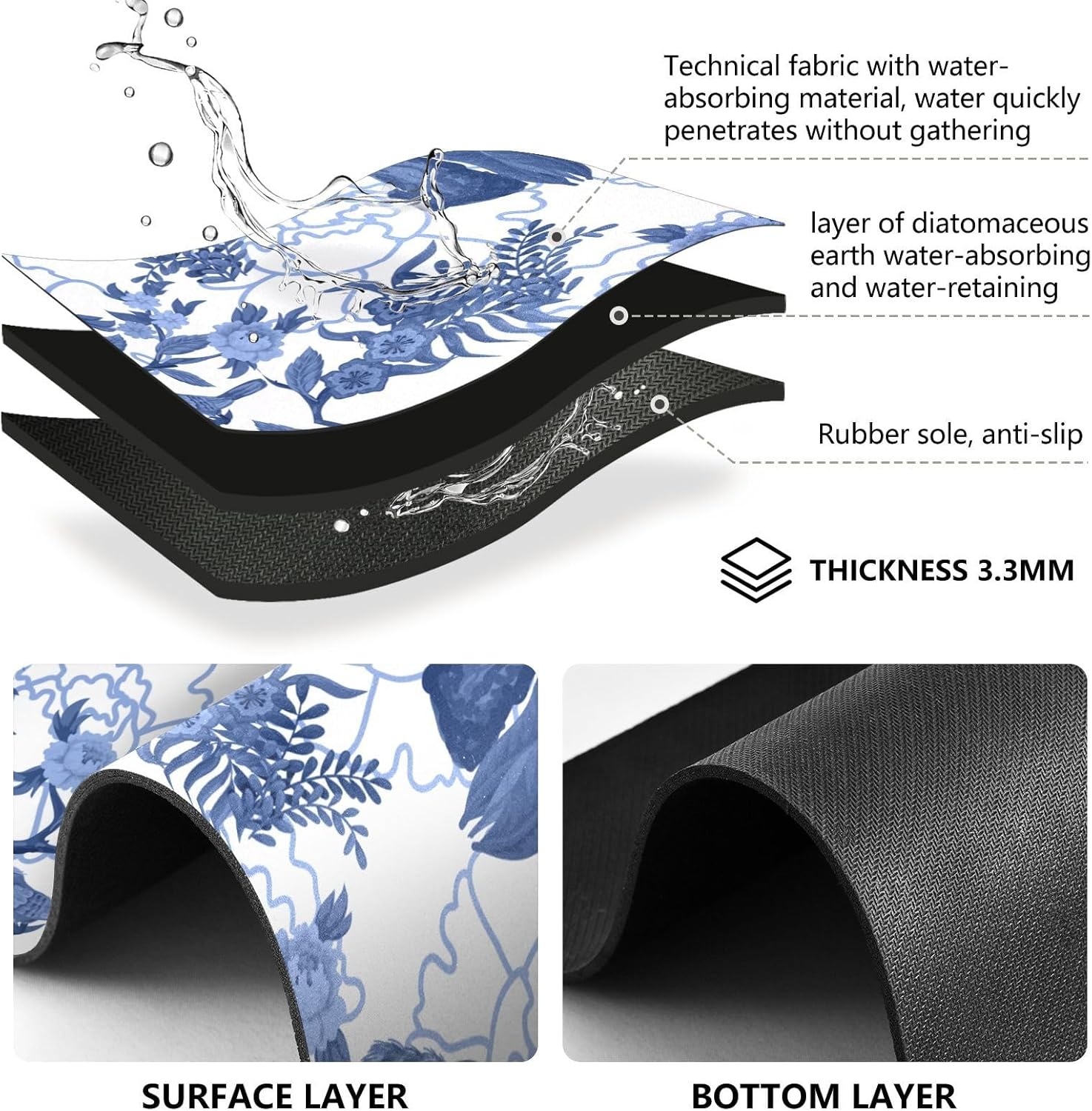 Blue Peacocks Birds Dish Drying Mat for Kitchen Counter, 23.6"x19.7" Coffee Bar, Super Absorbent Dish Drying Pad with Non-slip Rubber Backed, Quick Drying Mat for Coffee Machine Dish Drainer Ra