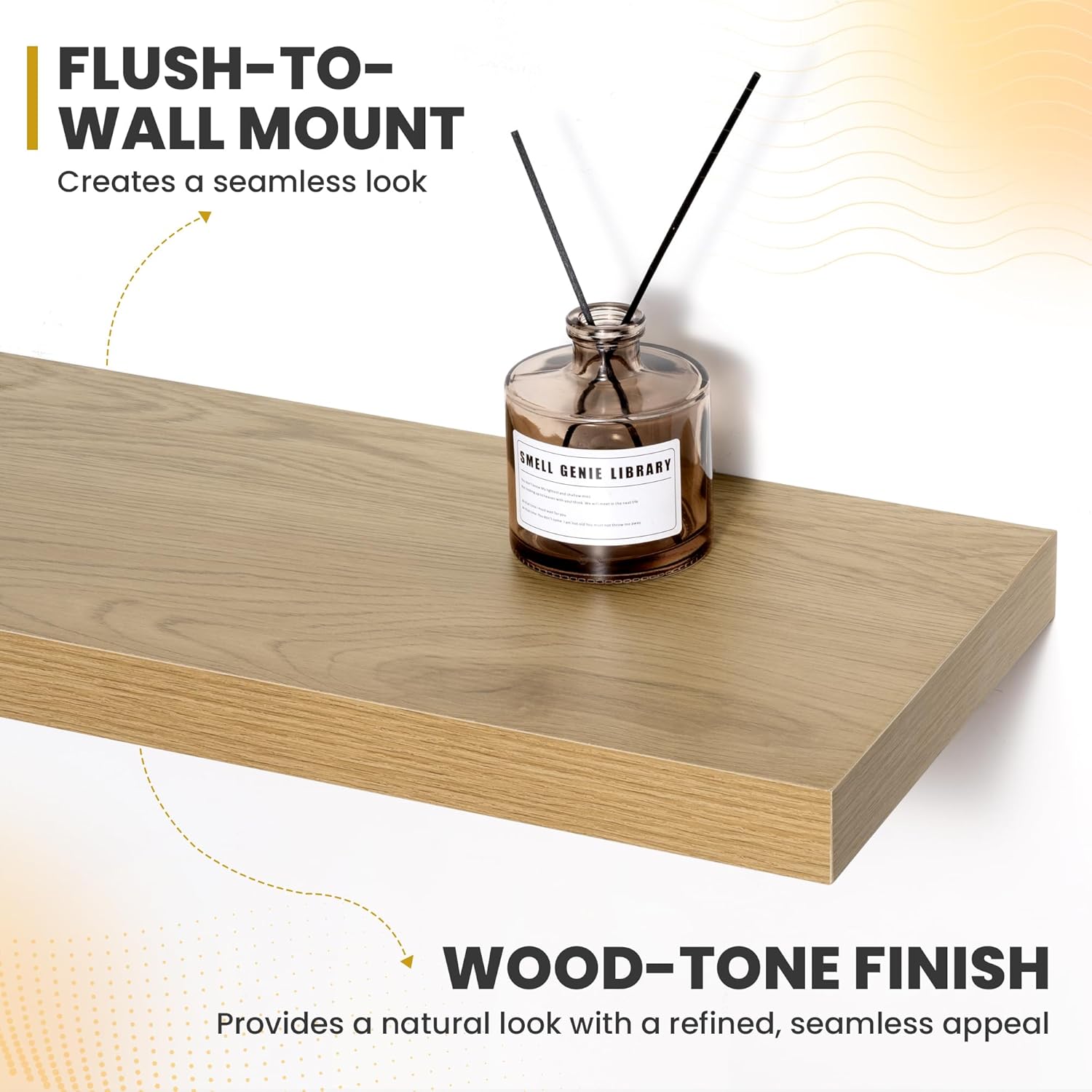 - [QUICK INSTALLATION WITH DETAILED GUIDES]: Our floating shelves include all mounting hardware and a comprehensive guide, enabling quick setup in under 10 minutes. Follow the step-by-step instructions to enjoy these beautiful shelves effortlessly, instantly upgrading your living space.