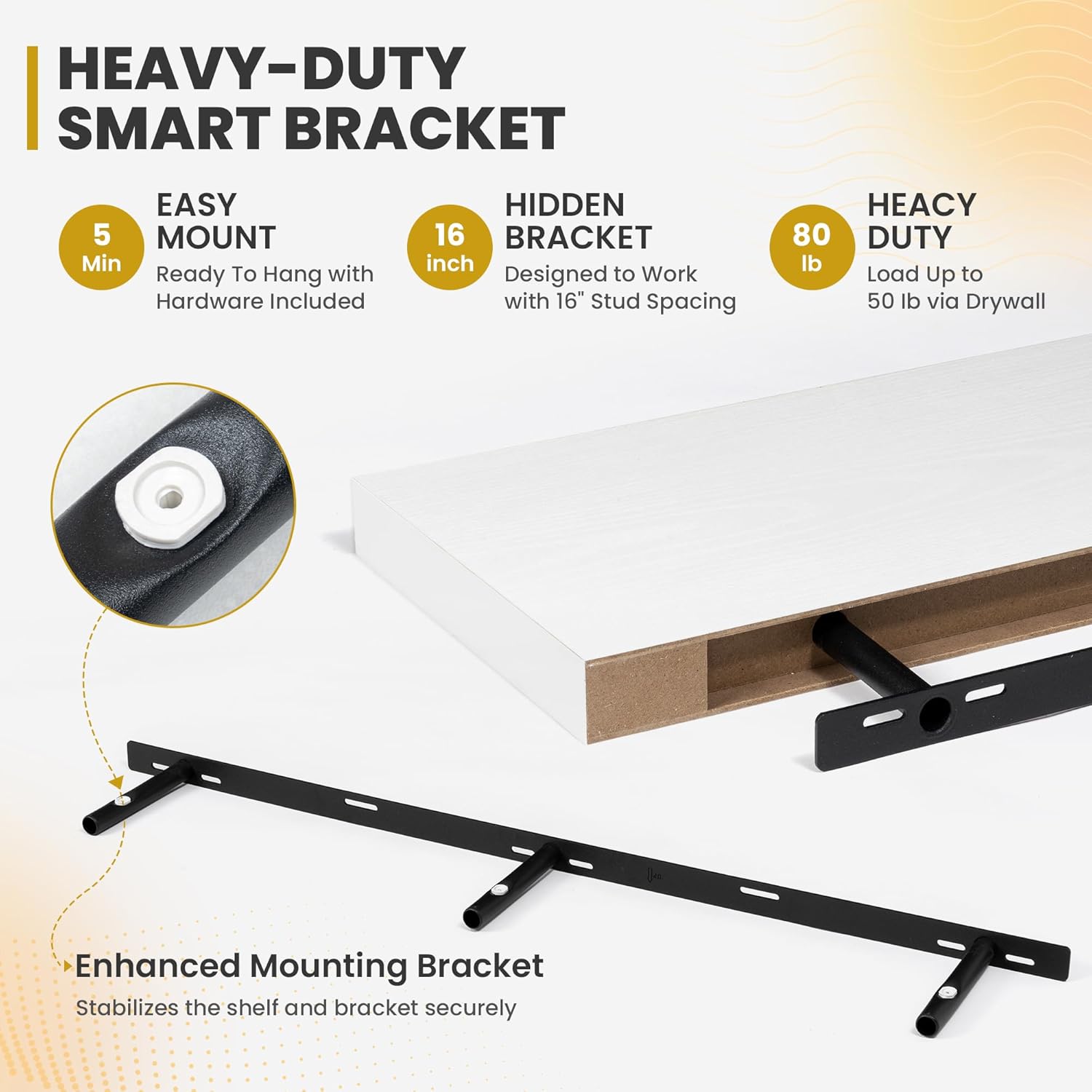 - [ROBUST & SECURE MOUNTING]: Equipped with a sturdy, hidden mounting bracket, these 48-inch floating shelves ensure solid support for your items. Designed for easy and secure installation, they come with all necessary hardware for a firm, wobble-free setup, allowing you to confidently display decor, photos, or functional items with style.