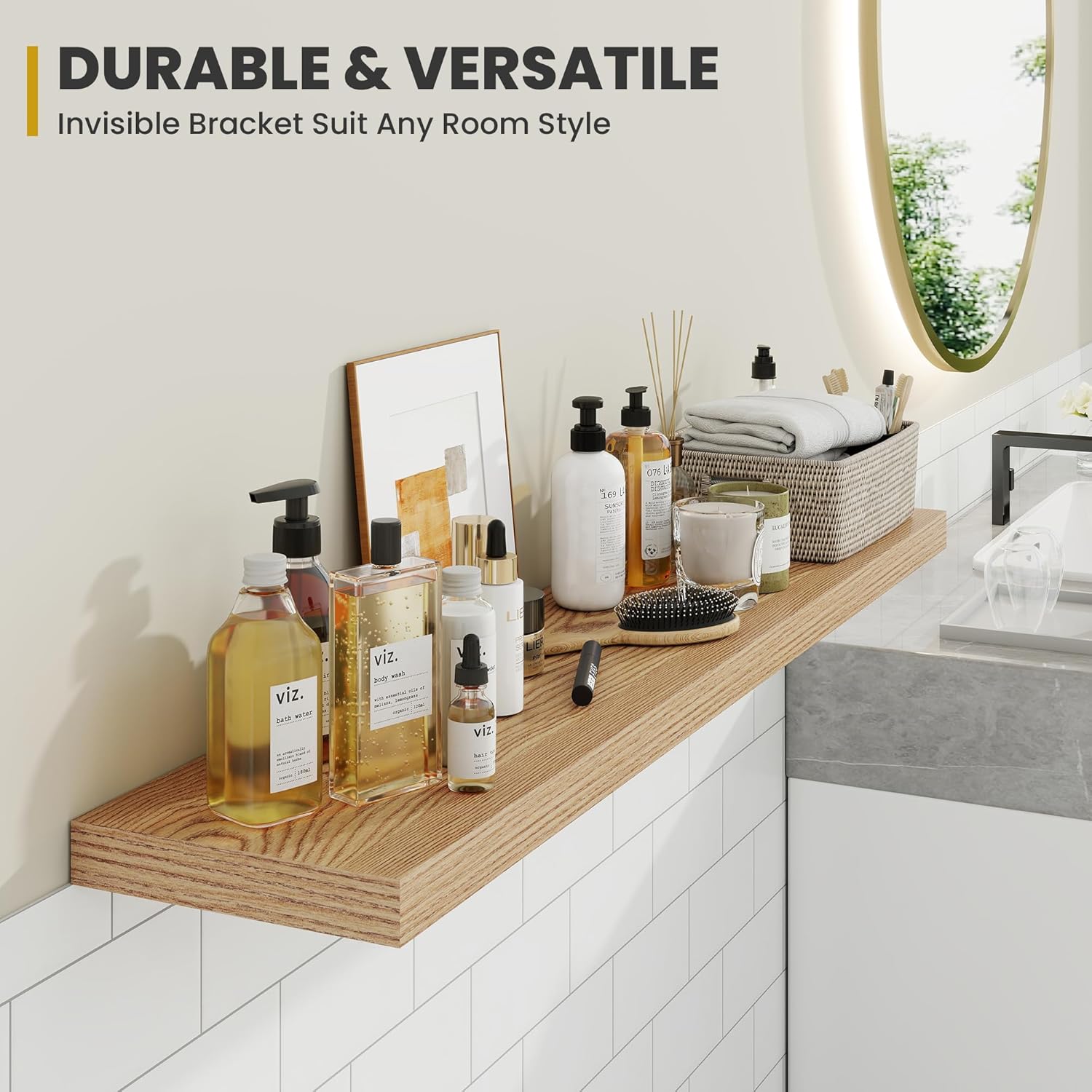 - [ROBUST & SECURE MOUNTING]: Equipped with a sturdy, hidden mounting bracket, these 40-inch floating shelves ensure solid support for your items. Designed for easy and secure installation, they come with all necessary hardware for a firm, wobble-free setup, allowing you to confidently display decor, photos, or functional items with style.