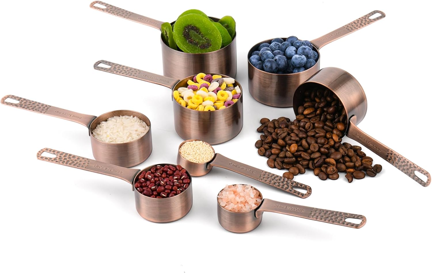 - ✱✱ Every copper measuring cups and spoons set: this set has the accurate measurements size in US and Metric engraved on the handle clearly, what will help you reduce any measuring errors for cooking or baking! for dry measuring cups and liquid measuring cups in kitchen!