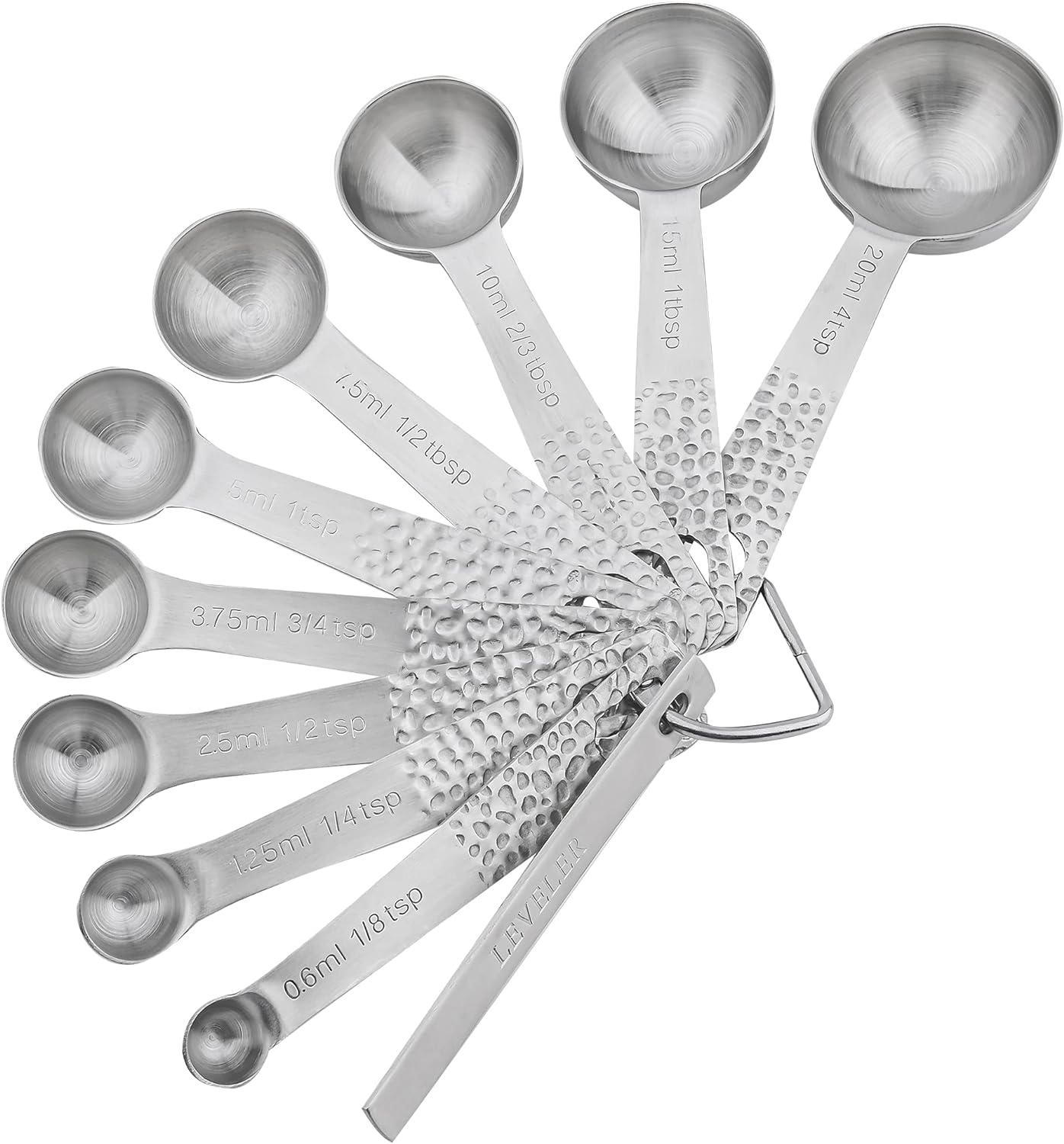 - ✱✱ Every stainless steel measuring cups and spoons set: this measuring set has the accurate measurements size in US and Metric engraved on the handle clearly, what will help you reduce any measuring errors for cooking or baking! for dry measuring cups and liquid measuring cups in kitchen!