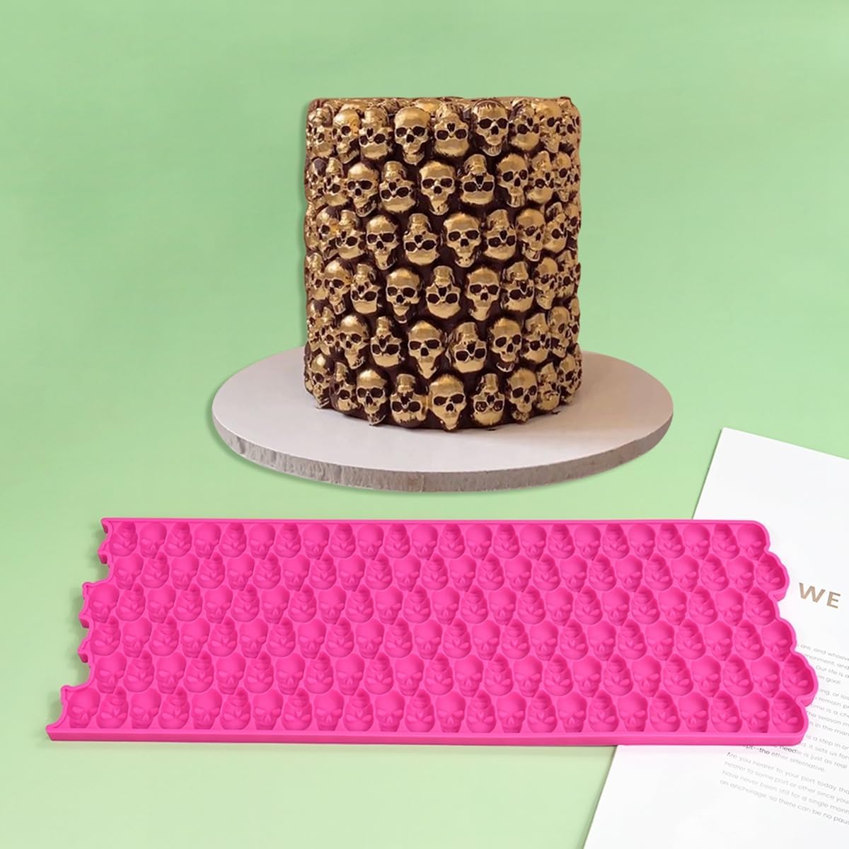mostsom Silicone Mold 3D Hollow Out Lace Molds 3D Skull Cake Lace Mat Halloween Silicone Mould Fondant Mold Chocolate Stencil Cake Decorating Border Bakeware (K_ Skull Shape)