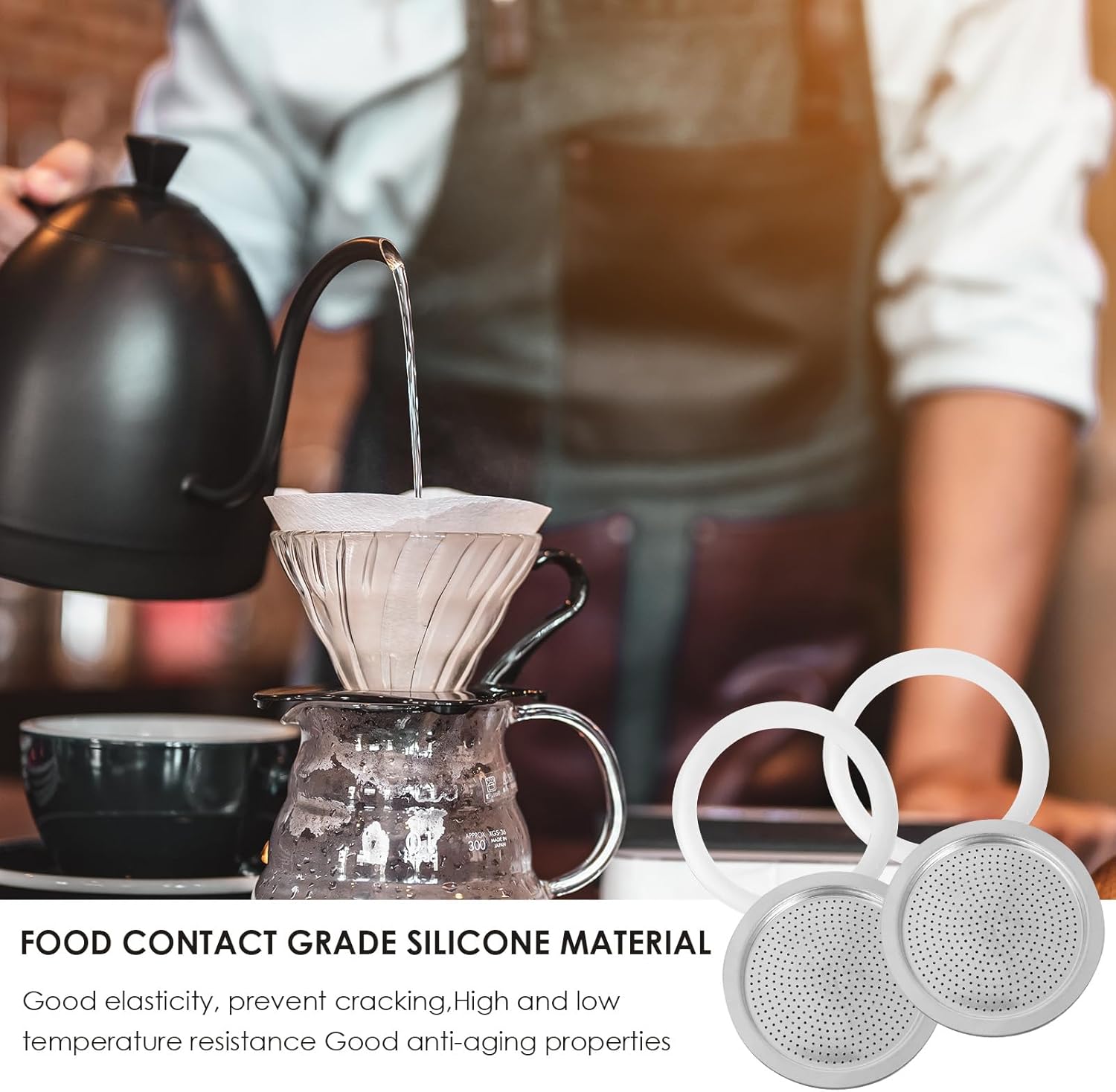 - Compatibility: Filter screen with an outer diameter of 2.5" and silicone gasket is 2.8", for 6 cup aluminum espresso moka pots of most brands