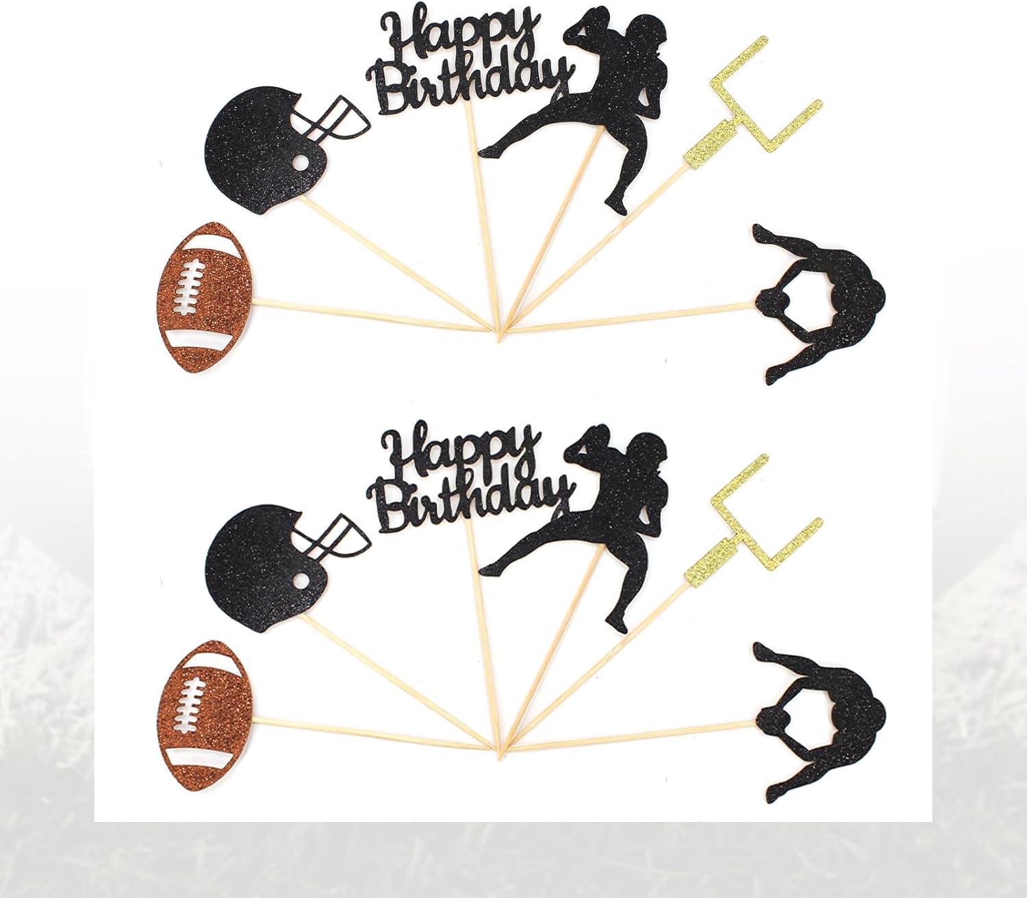 - Great football cake topper for birthday decor.The football cupcake picks are special,includes 6 styles-football/happy birthday letter/helmet/goal gate/players,is a good addition to football themed birthday party decorations for adults or kids boy.