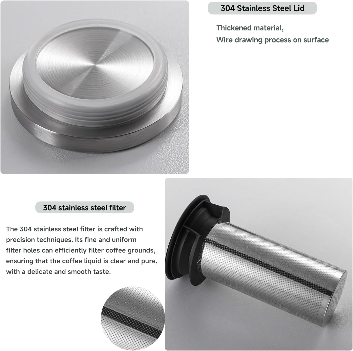 - 304 Stainless Steel Filter & Lid: Ultra-fine holes block residue while the durable, rust-proof design guarantees longevity.