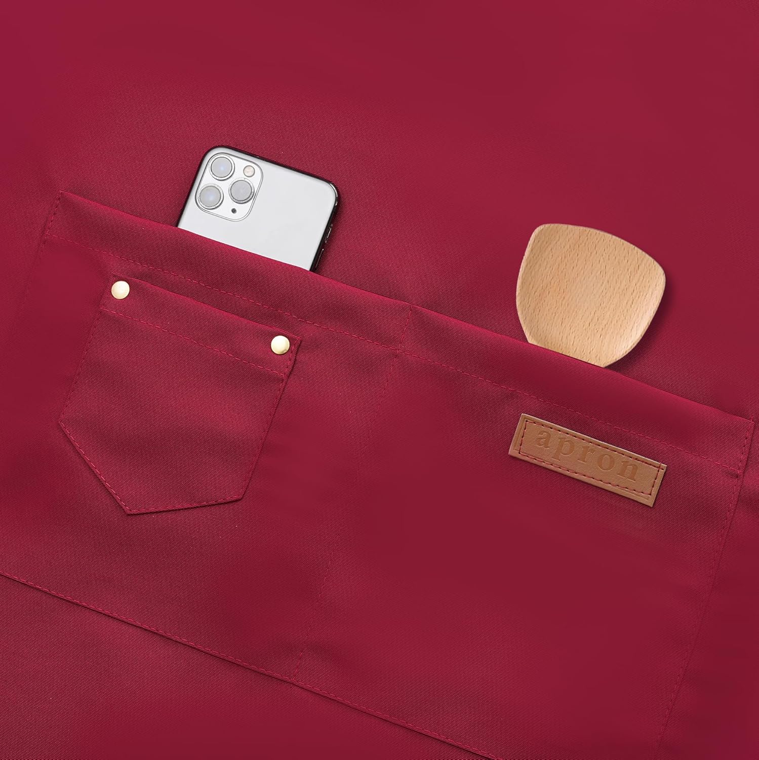 - 【Apron With Large Pockets 】Our kitchen apron has 2 large pockets in the middle of apron, and spacious divided pocket can give you enough place to hold into meat thermometer, grill slips, phones, recipe cards, seasoning packets, recipe cards, pen and phone etc.