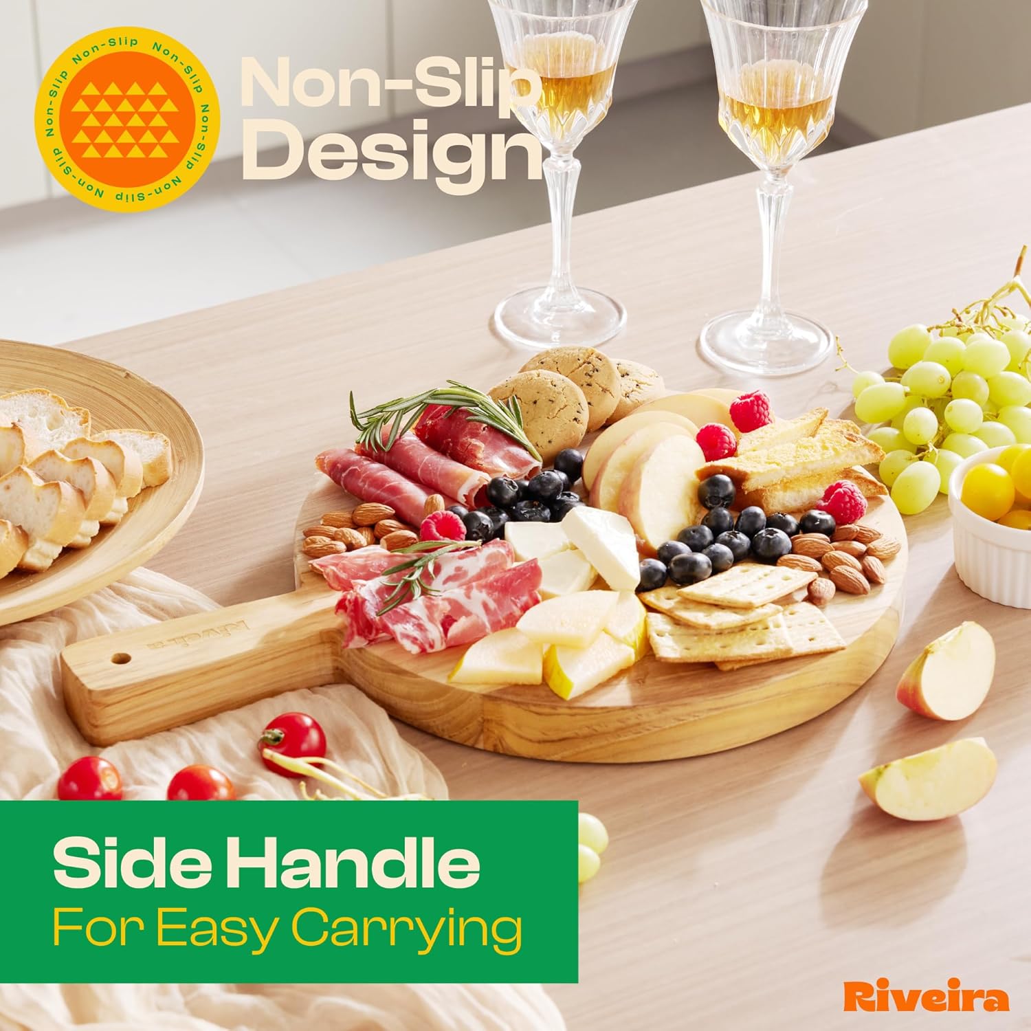 - Premium Crafted Teak — Take a detour from traditional kitchen aesthetics with this teak wood board crafted from 100% natural teak. Beyond being an unconventional and eco-friendly choice, the chopping board wood proudly showcases the environment friendly and organic teak. This wood cutting boards for kitchen counter adds an unexpected touch of confidence and style to your once-orderly culinary space. Riviera's wooden chopping boards for kitchen will be there for you for many years to come.