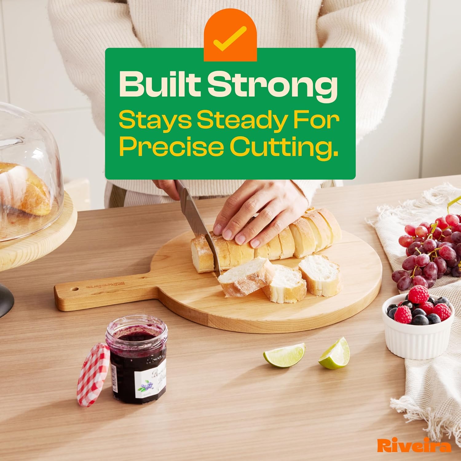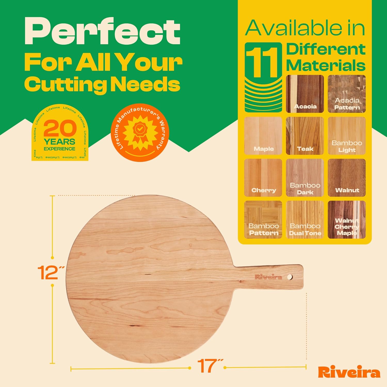 - Premium Crafted Cherry — Take a detour from traditional kitchen aesthetics with this cherry wood board crafted from 100% natural cherry. Beyond being an unconventional and eco-friendly choice, the chopping board wood proudly showcases the environment friendly and organic cherry. This wood cutting boards for kitchen counter adds an unexpected touch of confidence and style to your once-orderly culinary space. Riviera's wooden chopping boards for kitchen will be there for many years to come.